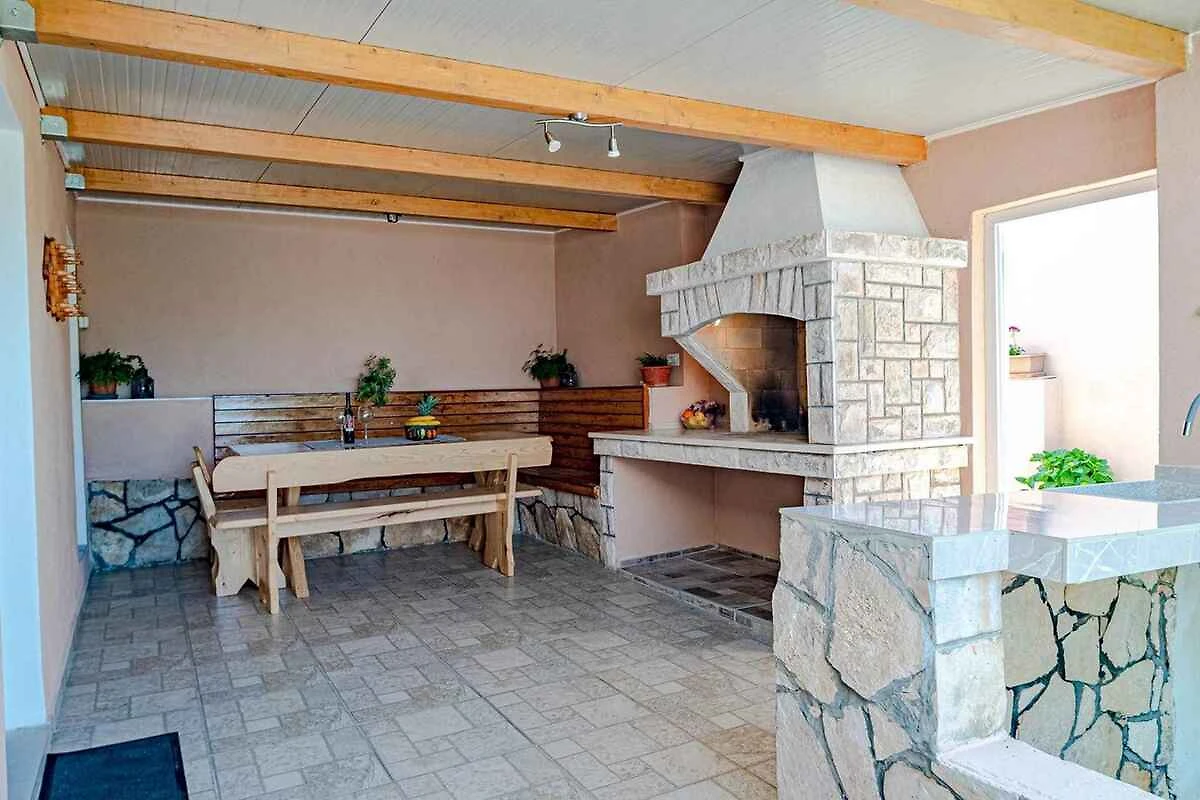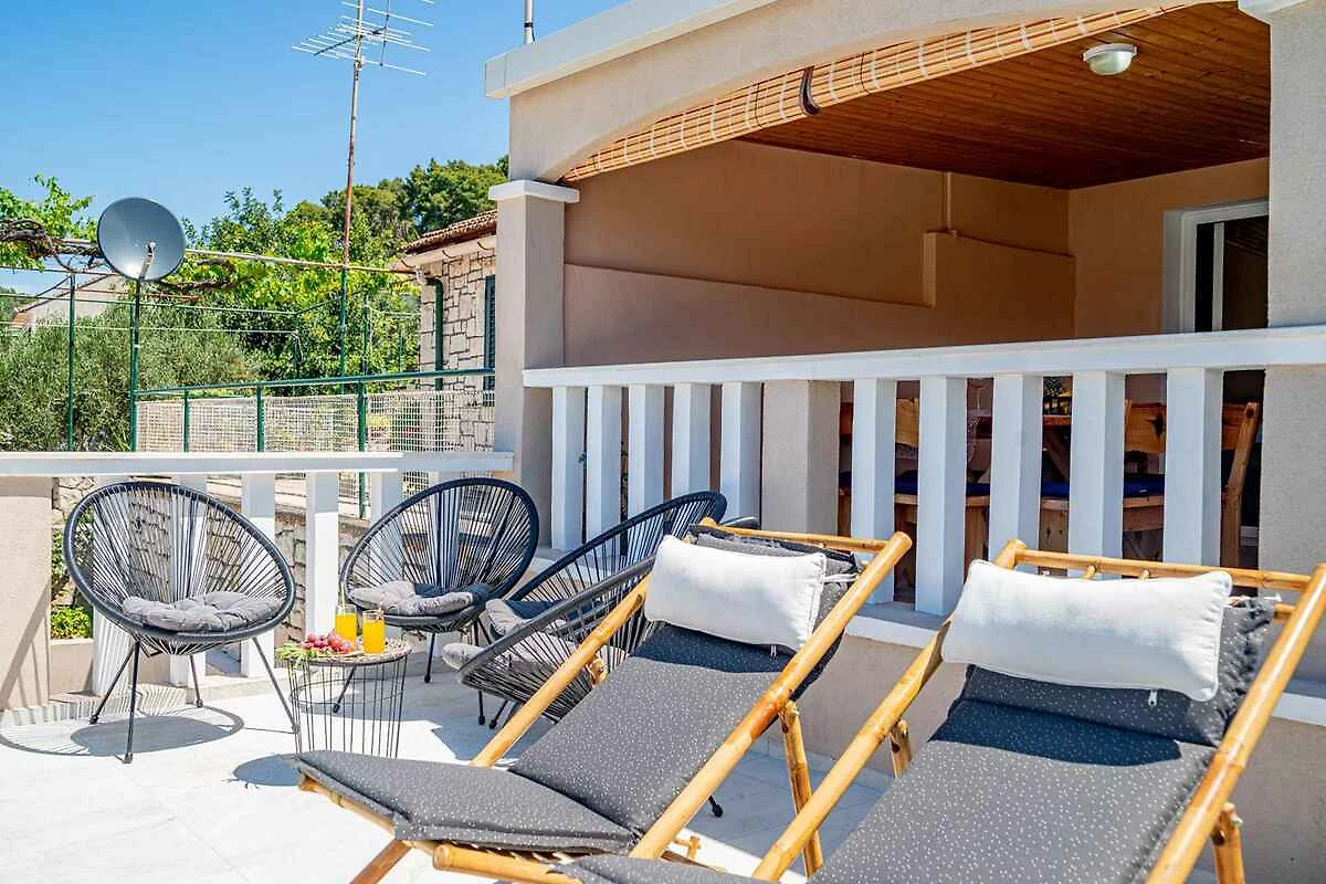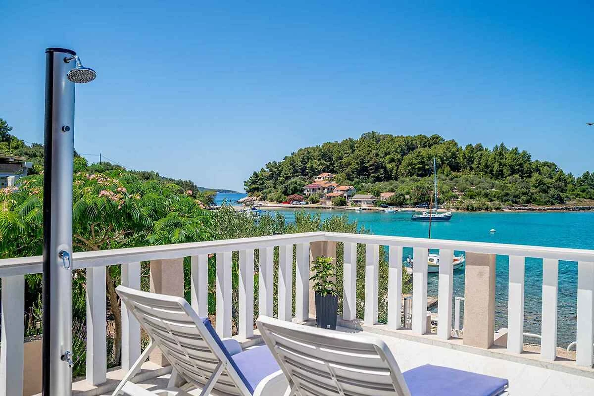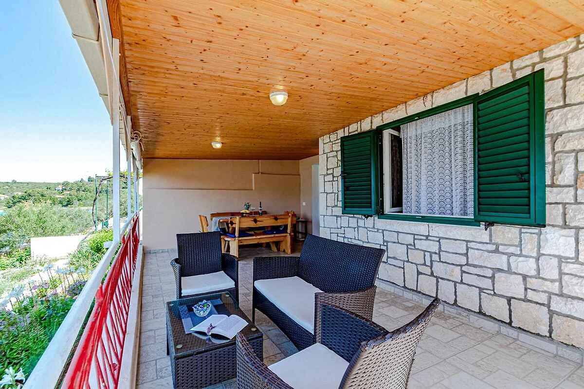 Vela Luka. Das Ferienhaus befindet sich auf einem Gartengrundstück. Die Zufahrt erfolgt über einen Weg (Geröll oder Schotter). Parkplatz auf dem Grundstück.