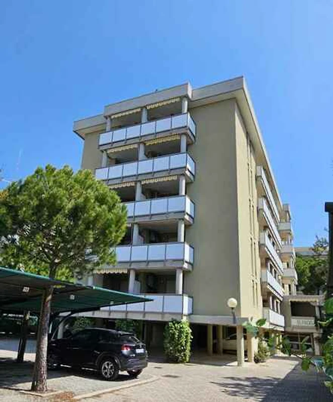 Bibione. Parkplatz (für 1 Pkw) auf dem Grundstück. Jede Wohnung verfügt über einen überdachten und nummerierten Parkplatz, für Autos von normaler Grösse, nicht für Minivans oder Vans.