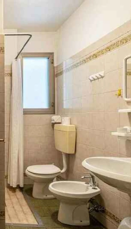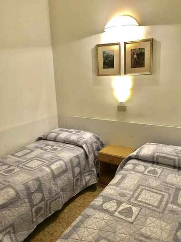 Der Eingang in Ihre Ferienwohnung befindet sich in verschiedenen Etagen. Wohnzimmer mit 1 Zusatzbett auf Couch/Sofa, TV, Essecke und Zugang zum Balkon (Gartenmöbel). 2 Schlafzimmer jeweils mit 2 Einzelbetten. Kochecke im Wohnzimmer mit Dunstabzugshaube, Kühlschrank (Eisfach), Mikrowelle und Kaffeemaschine. Bad mit Dusche, 1 Waschbecken, WC, Bidet und Fenster.