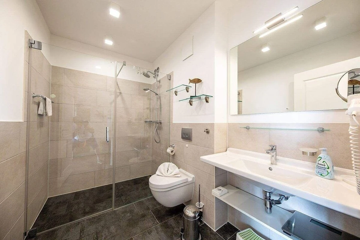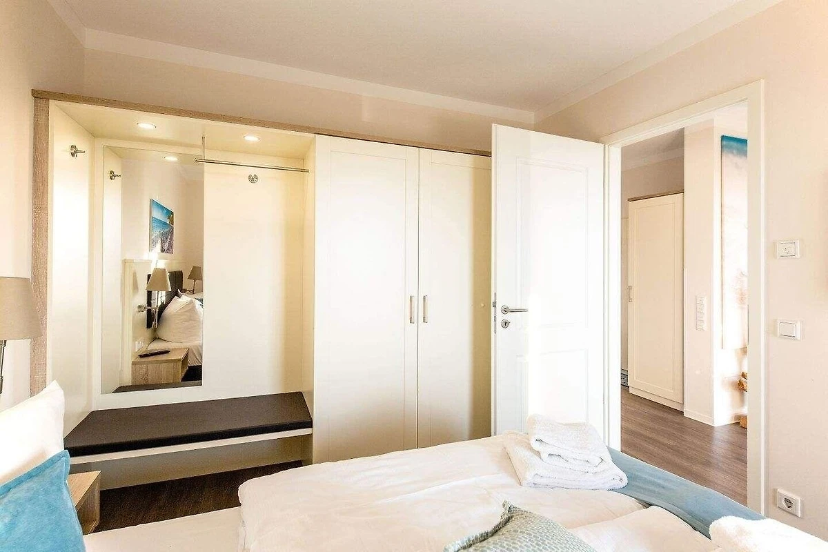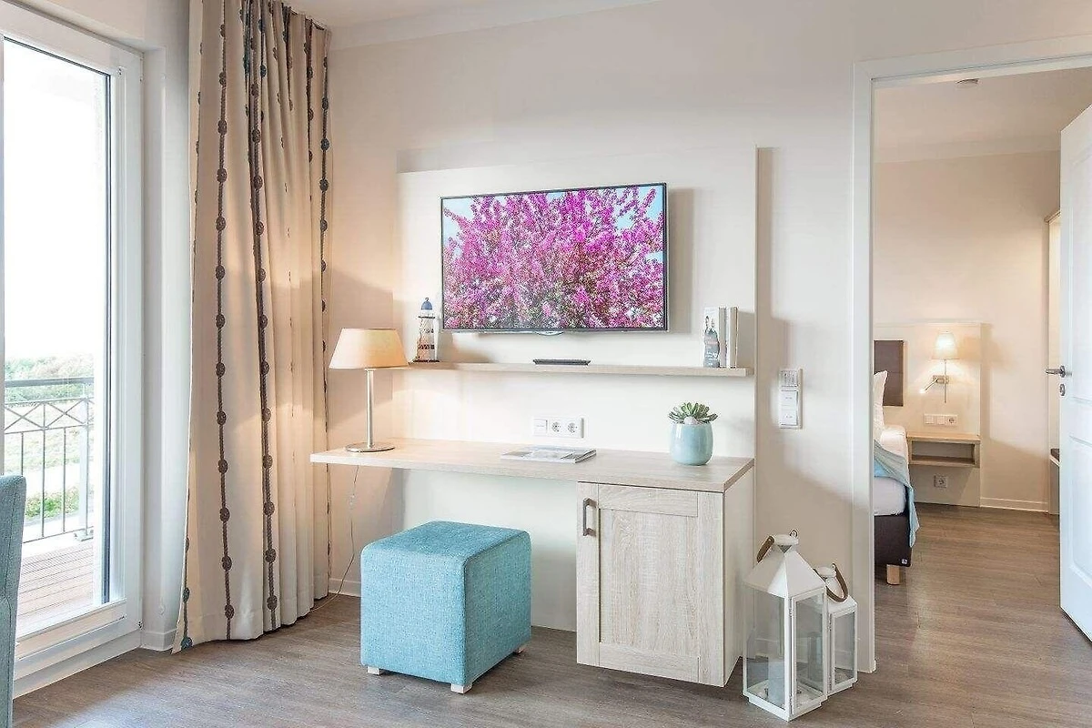 Das Waterkant-Aparthotel liegt in der ersten Reihe direkt hinter den Dünen, dazwischen befindet sich nur der Europa Rad- und Wanderweg. Die Suite 1-29 befindet sich im ersten Obergeschoss vom Aparthotel im vorgelagerten Ostflügel. Dieser Gebäudebereich hat einen zusätzlichen separaten Eingang.Vom Balkon und beiden Zimmern der Suite geniessen Sie einen wundervollen Blick auf die weite Ostsee.