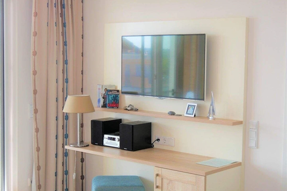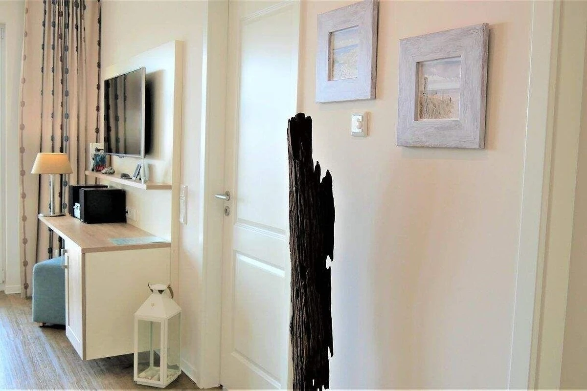 Der terrassenartige Balkon ist zur Meerseite gelegen. Ein Abstellraum für Fahrräder sowie Münz-Waschmaschine und -Wäschetrockner befinden sich in der Tiefgarage. In der Lobby gibt es einen gemütlichen Kamin.