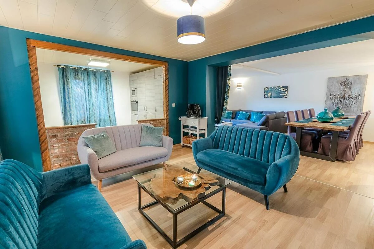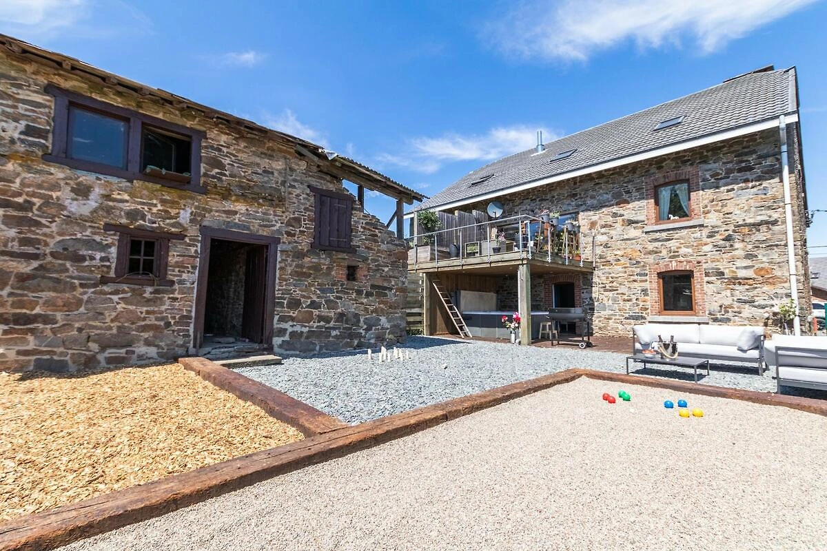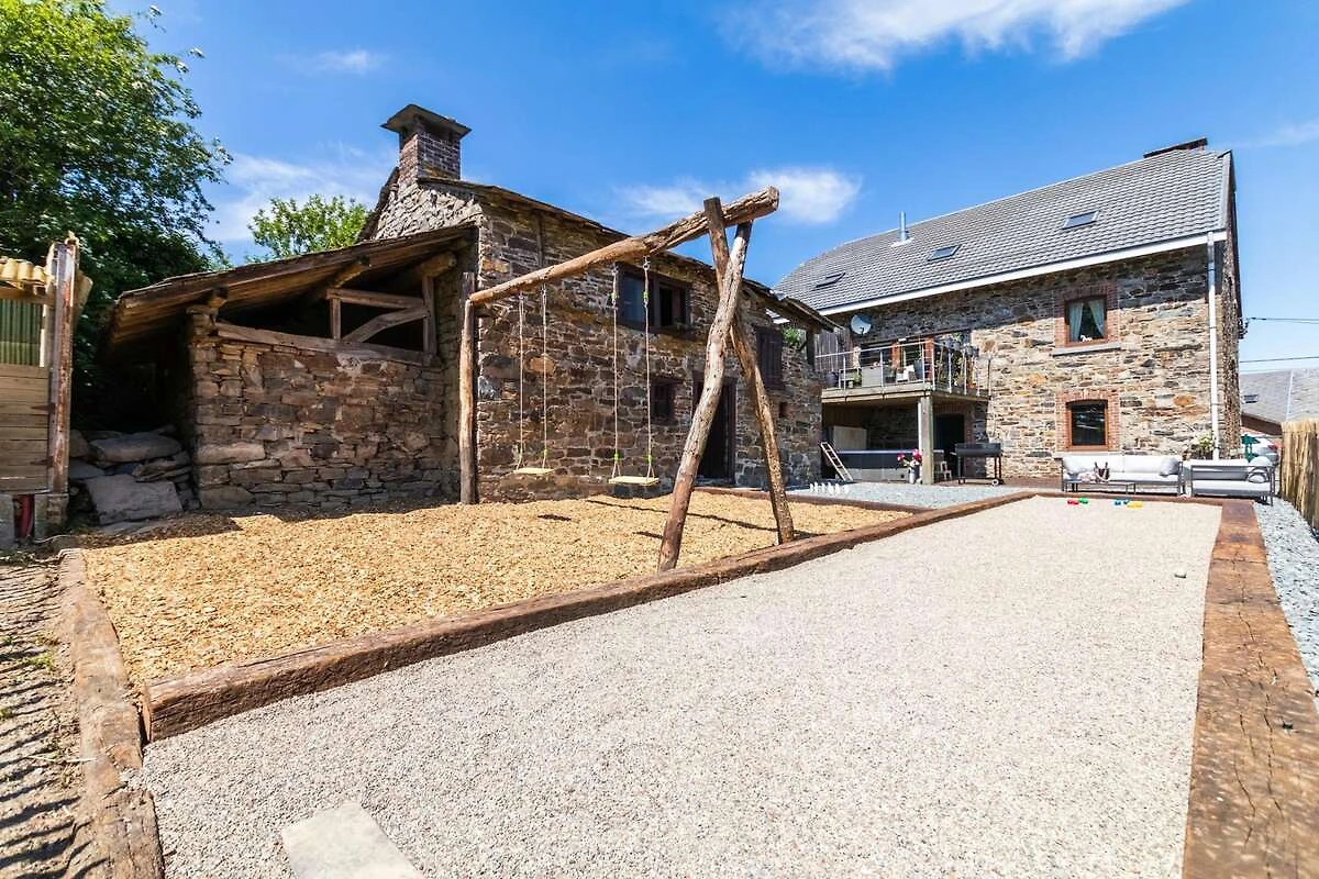 Willkommen in diesem bezaubernden Landhaus, eingebettet in eine ruhige Dorflage, ideal für Familienurlaube. Das Haus wurde für Familienkomfort konzipiert und bietet Platz für bis zu neun Gäste (maximal vier Erwachsene) sowie großzügige Räumlichkeiten mit Familienzimmern, Outdoor-Spielplätzen, einem großen überdachten Whirlpool und zwei einladenden Wohnzimmern. Die offene Küche besticht durch moderne Geräte und bietet Blick auf den Garten – ideal zum gemeinsamen Kochen und Genießen der ruhigen Umgebung. Die gemütliche Atmosphäre verbindet stilvolles Ardennen-Ambiente mit gemütlichen Sitzgelegenheiten am Kamin oder zum gemeinsamen Fernsehen.