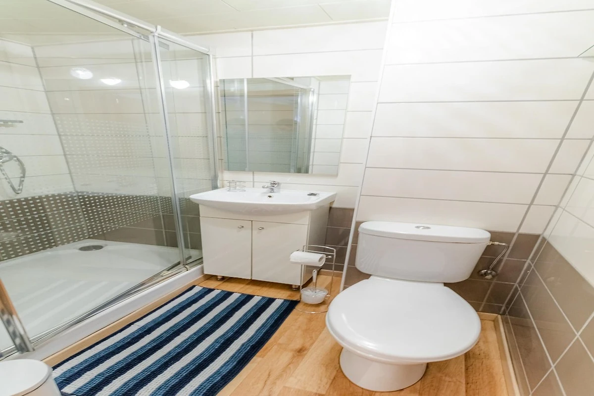 Die Unterkunft war sehr sauber und gut gepflegt, Der Waschraum war ein Bonus, besonders mit Kindern in der Nähe, Es machte unseren Aufenthalt viel bequemer,