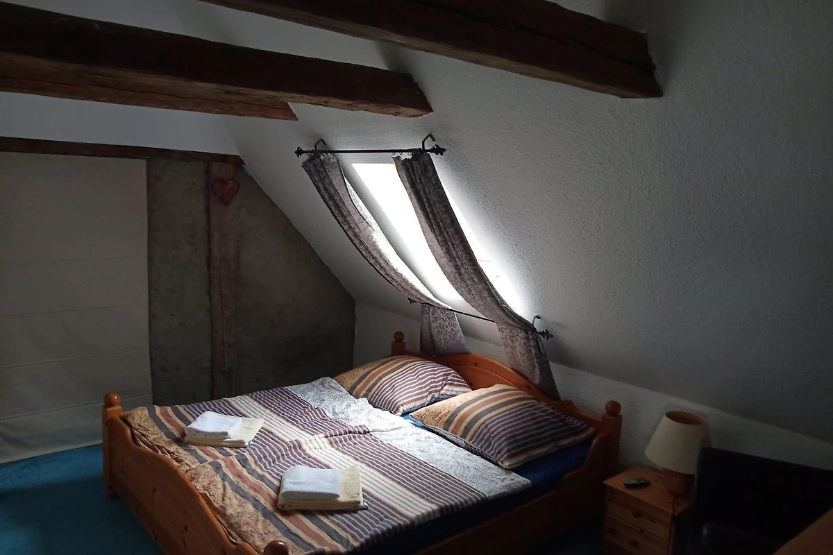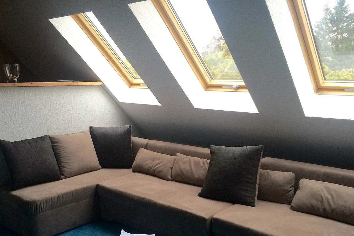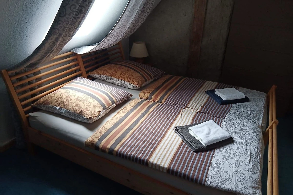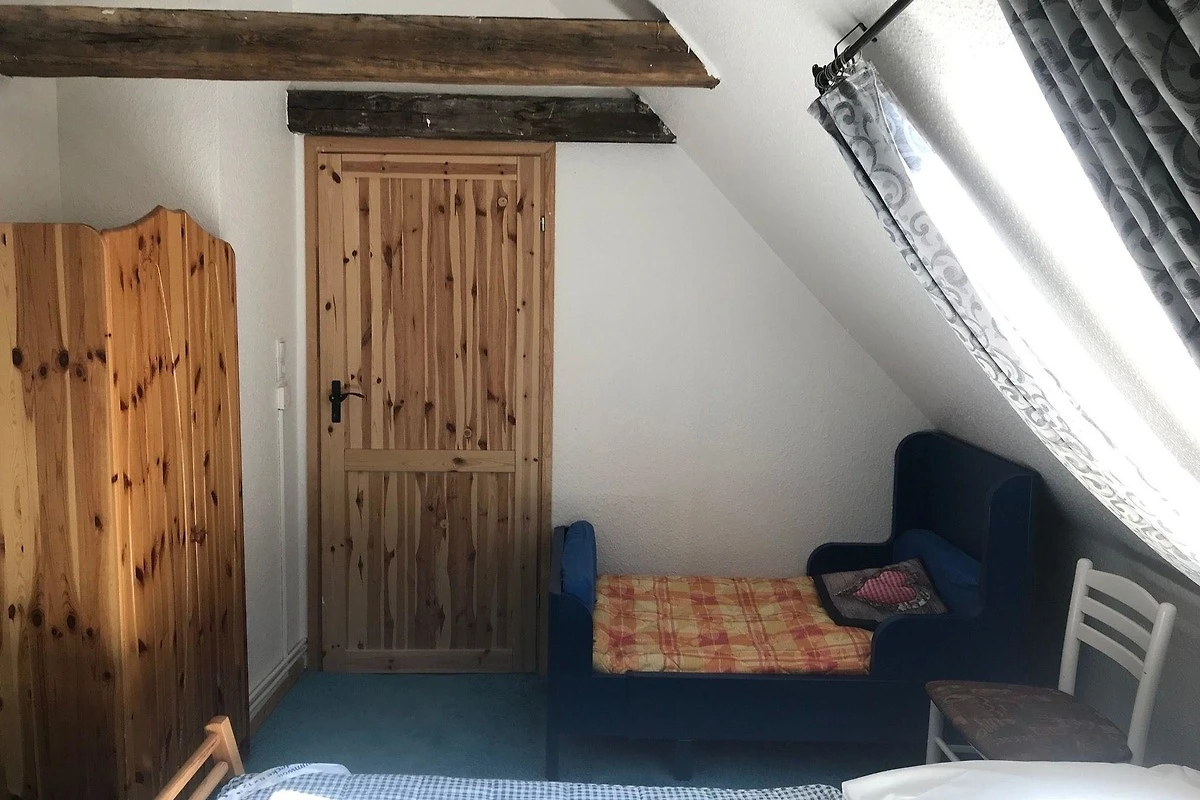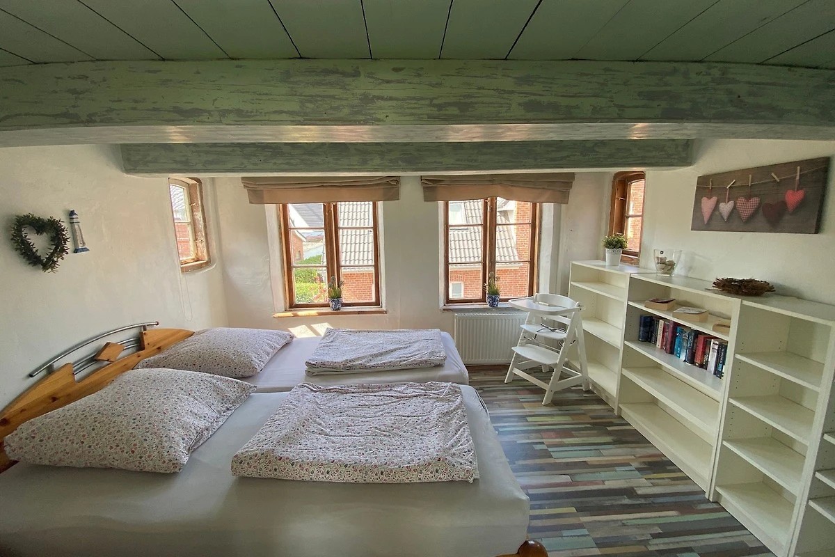 3 Schlafzimmer, 1 Kinderbett, 1 offener Schlafbereich (Tenne) über dem Wohnzimmer für bis zu 2 Personen. 1 Badezimmer mit Dusche und Wanne und extra WC. 1 offene Küche mit Tisch und Stühlen. Ein grosser Wohnbereich. 3 Fernseher.