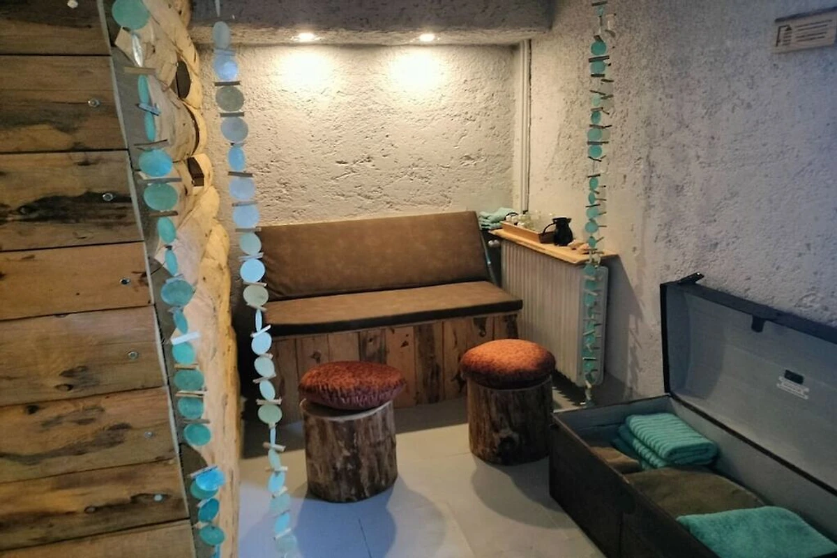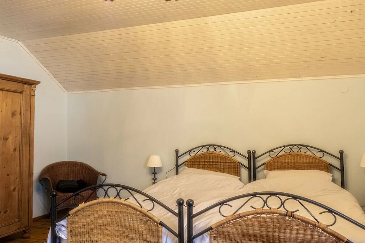 In der 1. Etage: (Wohnzimmer(, , Kochnische, TV, DVD-Spieler, DVD-Spieler, Blu-ray-Player, CD-Spieler), Schlafzimmer(, , Einzelbett, Einzelbett, Waschbecken), Schlafzimmer(, , Einzelbett, Einzelbett), Badezimmer(Toilette, Dusche, Waschbecken))