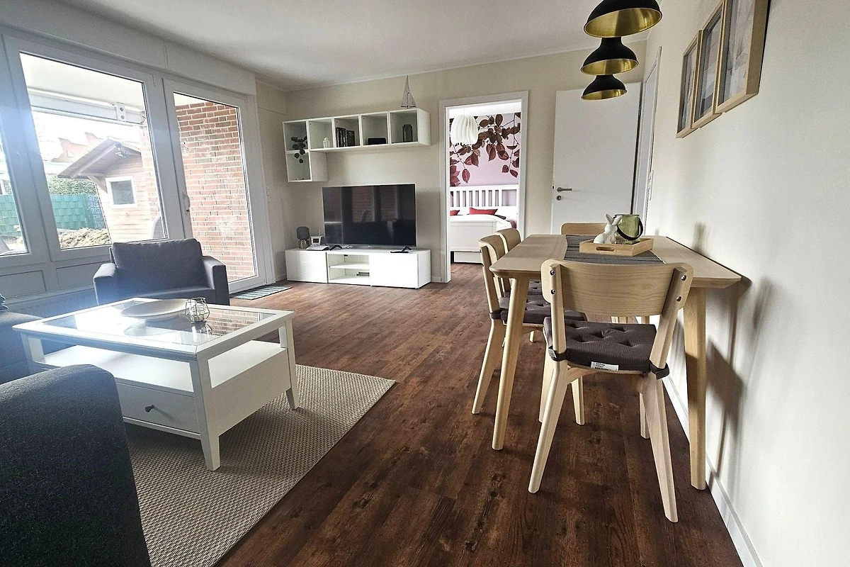 Die Ferienwohnung bietet eine komfortable und allergikergeeignete Unterkunft mit zwei Schlafzimmern, darunter ein Doppelbett und ein Einzelbett. Die moderne Küchenzeile ist mit einem Elektro-/Gasherd, Backofen, Mikrowelle, Kühlschrank, Geschirrspüler und einer Kaffeemaschine ausgestattet, sodass sich Gäste nach Herzenslust verwöhnen können. Ein Esstisch lädt zum geselligen Beisammensein ein. Im stilvollen Badezimmer mit Fenster sorgt eine bodengleiche Dusche für hohen Komfort. Zur weiteren Ausstattung gehören ein Duschbad, eine HiFi-Anlage, TV, Waschmaschine und Wasserkocher. Helle und einladende Wohnräume sind mit einem Sofa, Sessel und Schrank bzw. Kommode optimal gestaltet. WLAN umfasst die gesamte Wohnung und sorgt für Internetzugang. Eine Garderobe und ein Staubsauger sind ebenfalls vorhanden. Die Heizung ermöglicht gemütliche Stunden zu jeder Jahreszeit. Die Ferienwohnung bietet alles für einen angenehmen Aufenthalt.