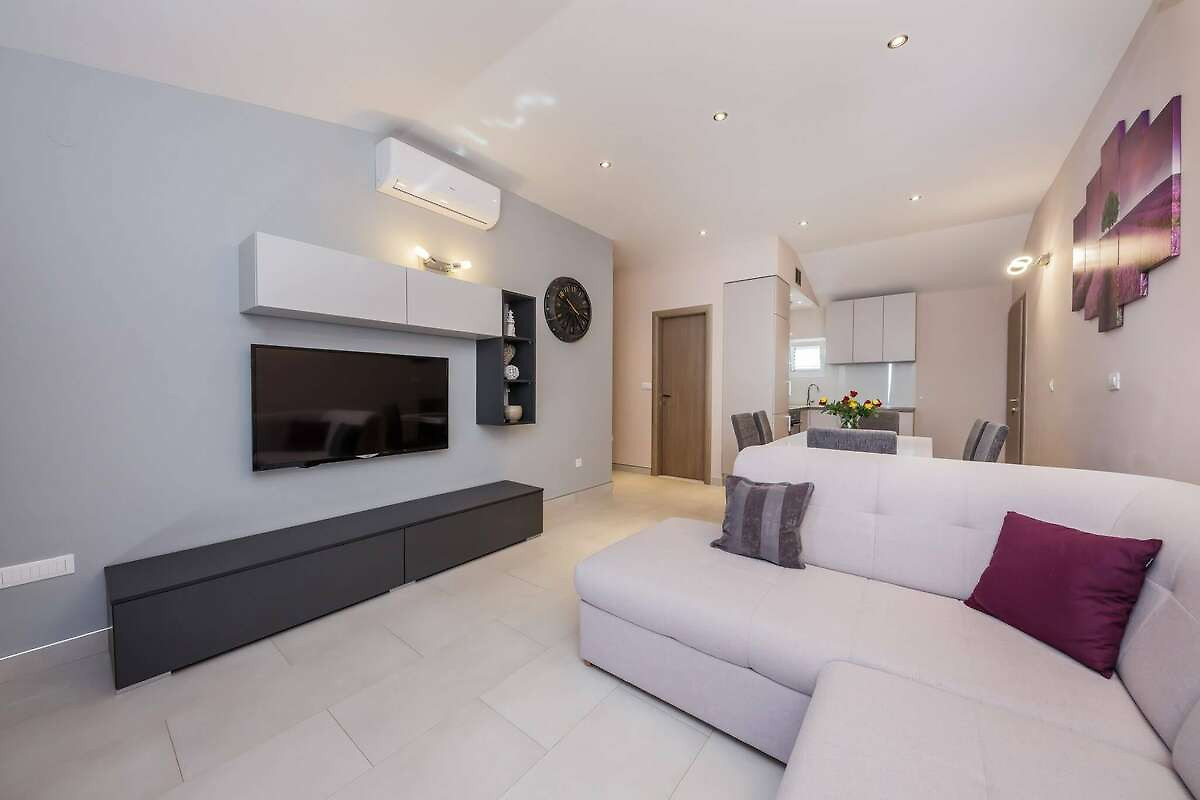Die Wohnung ist ideal gelegen, nur 15 Meter von Sand- und Felsstränden entfernt, sodass Sie die Adriaküste bequem genießen können. Wichtige Annehmlichkeiten wie ein Supermarkt, Restaurants und ein Café sind fußläufig erreichbar. Abenteuerlustige finden im nahegelegenen Aquapark Dalmatia und im Nationalpark Krka zahlreiche Möglichkeiten zur Erkundung. Die historische Altstadt von Šibenik ist nur 7 km entfernt, und der Flughafen Split ist etwa 50 km vom Apartment entfernt und somit leicht erreichbar.
