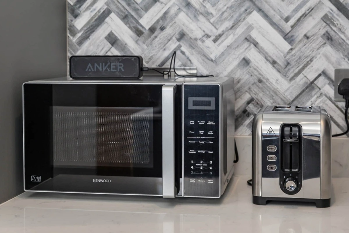 Der Wasserkocher und der Toaster in der Küche waren praktisch für schnelle Frühstücke, bevor wir losgegangen sind,