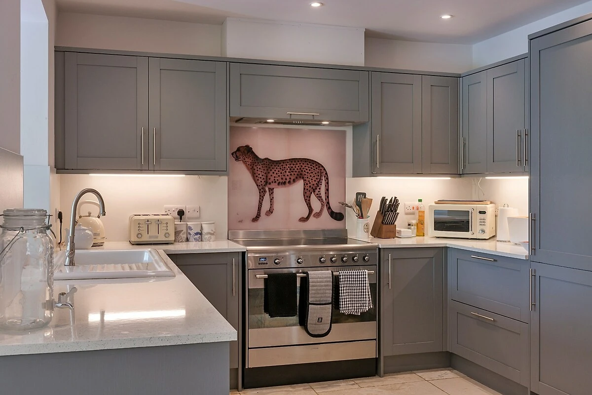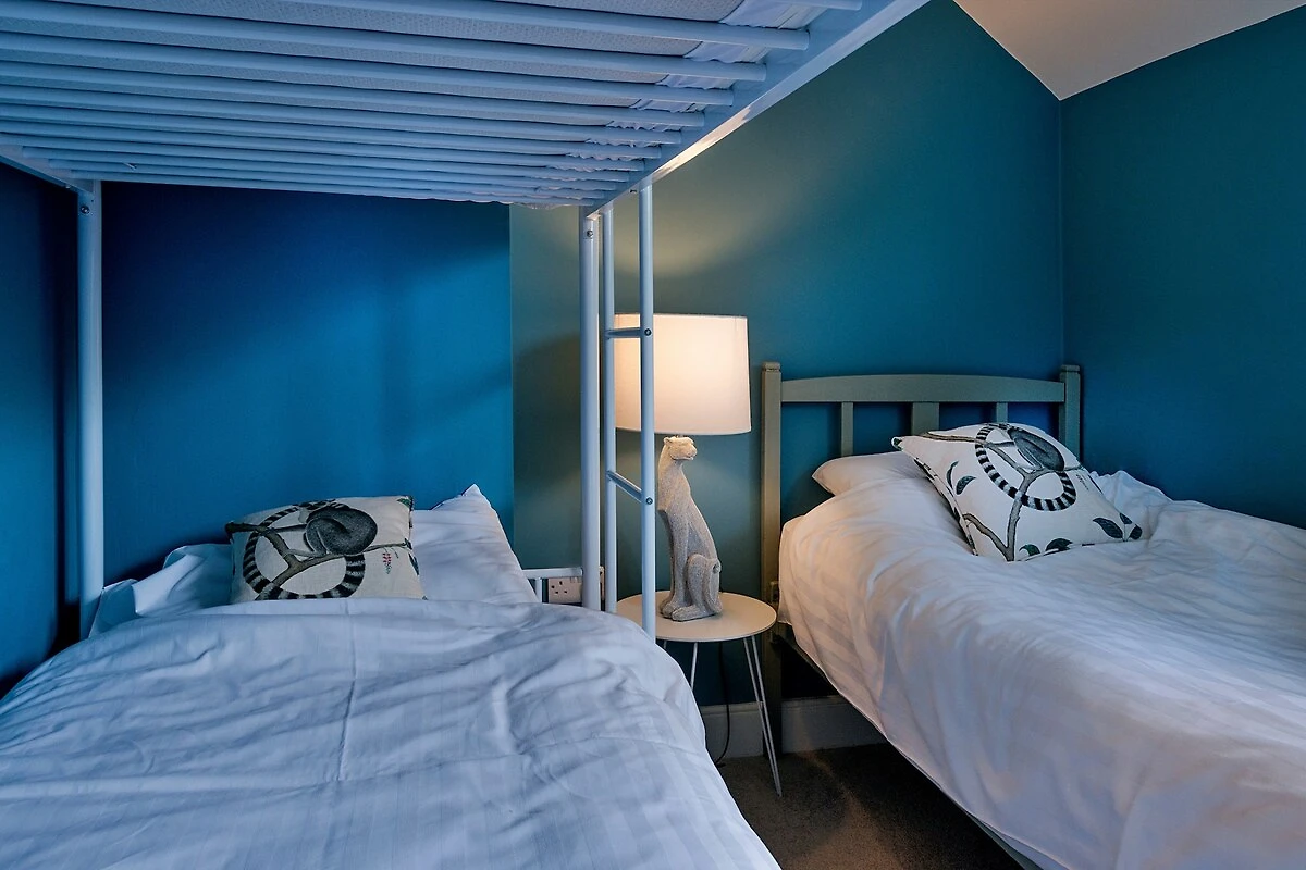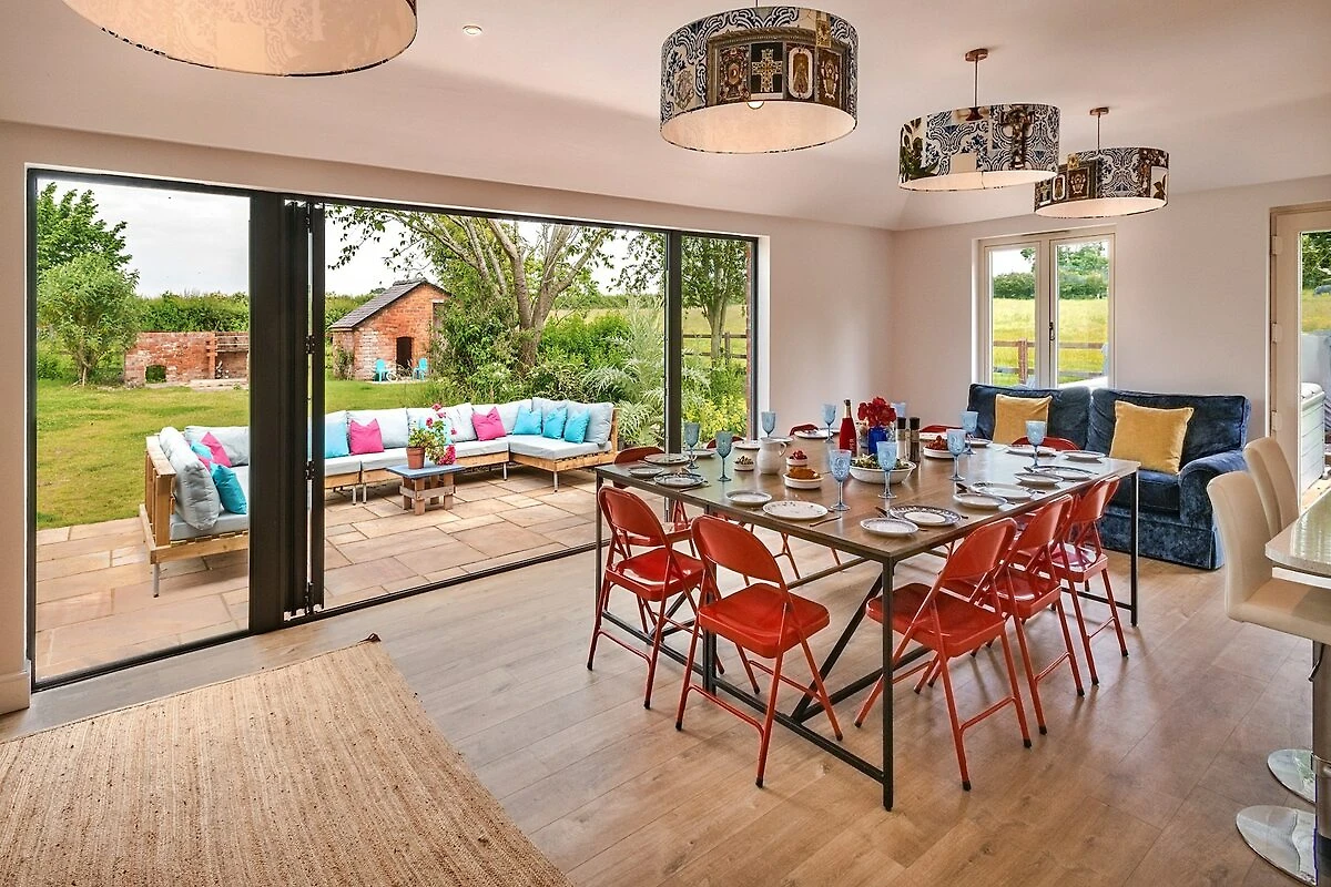 Betreten Sie das geräumige Hare Cottage, das bequem Platz für 9 Gäste bietet. Hier finden Sie ein prächtiges Kingsize-Schlafzimmer mit eigenem Bad, ein gemütliches Doppelzimmer und einen charmanten Schlafraum mit einem zusätzlichen Einzelbett, ergänzt durch ein Familienbadezimmer für zusätzlichen Komfort. Das Schlafzimmer mit Kingsize-Bett im Erdgeschoss verfügt über ein eigenes Badezimmer, das Privatsphäre und Komfort für alle gewährleistet. Das Herzstück des Hare Cottage ist der weitläufige Gartenraum, der zum geselligen Beisammensein und Essen einlädt. Mit einem doppelseitigen Holzofen zum Warmhalten, einem Herd für kulinarische Köstlichkeiten, einem Weinkühlschrank für feierliche Momente und einem Smart-TV gepaart mit einem lustigen Tischfußballbereich ist es der ideale Ort für die ganze Gruppe, um gemeinsam zu genießen.