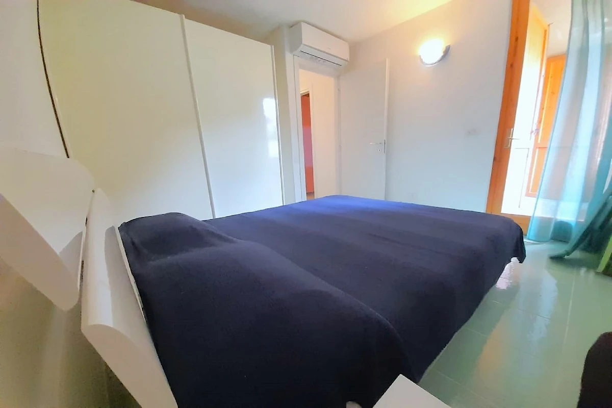 Die offene Küche ist praktisch und komfortabel gestaltet und verfügt über Herd, Dunstabzugshaube, Kühlschrank und Waschbecken – so wird die Zubereitung von Mahlzeiten zum Kinderspiel. Das Apartment verfügt über ein gemütliches Schlafzimmer mit einem komfortablen Doppelbett für erholsame Nächte. Ein weiteres Schlafzimmer mit Doppelschlafsofa bietet bequem Platz für weitere Gäste. Das stilvolle Badezimmer ist mit Dusche, Waschbecken, WC und Bidet ausgestattet und erfüllt alle Ihre Bedürfnisse. Freuen Sie sich auf Ihre private, überdachte Terrasse – ein herrlicher Ort, um Ihren Morgenkaffee zu genießen oder die Abendbrise zu genießen.