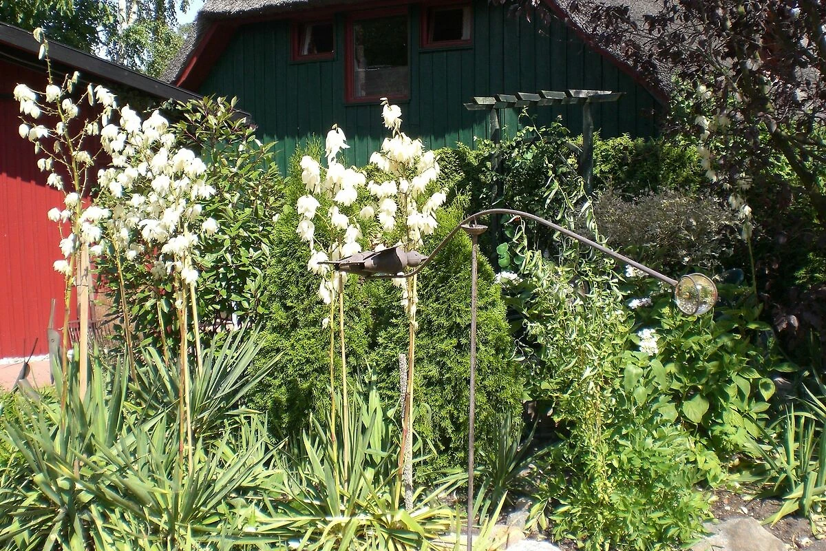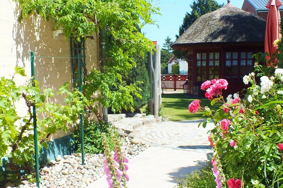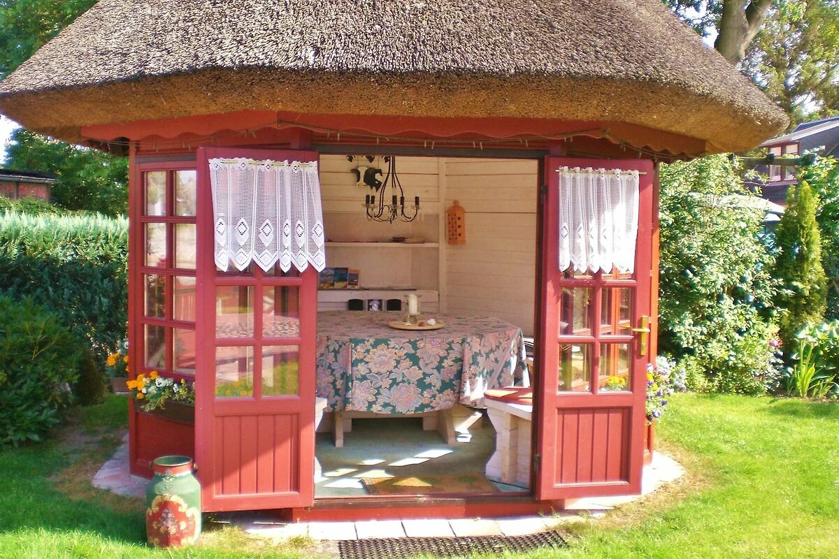 Von Ihrer Frühstücks-Terrasse direkt am Haus, dem ungestörten Gartenbereich, der Liegewiese - und an Wind und Wettertagen aus dem zugehörigen Pavillon - blicken Sie in unseren schön eingewachsenen, ruhigen Garten.