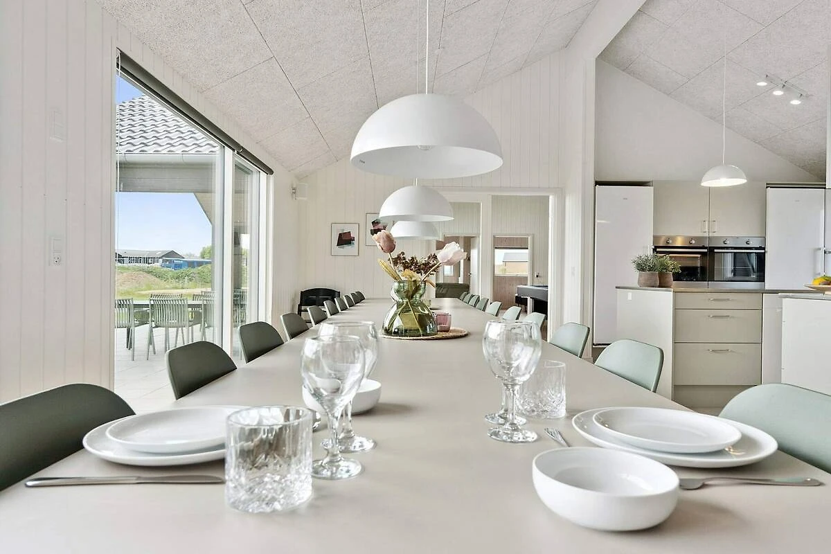 , Wohnzimmer(4x Einzelbett), Küche(Kochherd(2 Kochplatten), Kaffeemaschine, Backofen, Mikrowelle, Spülmaschine, Kühl-/Gefrierkombination), Wohn-/Schlafzimmer(TV(Deutsch Fernsehsender, dänische Fernsehsender, norwegische Fernsehsender, schwedische Fernsehsender), Trockner, Waschmaschine), Schlafzimmer(2x Einzelbett), Schlafzimmer(2x Einzelbett), Schlafzimmer(2x Einzelbett), Schlafzimmer(2x Einzelbett), Schlafzimmer(2x Einzelbett), Schlafzimmer(2x Einzelbett), Schlafzimmer(2x Einzelbett), Schlafzimmer(2x Einzelbett), Badezimmer(Waschbecken, Dusche, Toilette), Badezimmer(Waschbecken, Dusche, Toilette), Badezimmer(Waschbecken, Dusche, Toilette), Badezimmer(Waschbecken, Dusche, Toilette), outdoor shower(im Garten), Whirlwanne(im Garten, 5 Personen), Sauna(im Garten, 5 Personen), Terrasse, Gartenmöbel, Pool(im Innenbereich), Spielgeräte, Tischtennisplatte, Tischfußball, Dart, Billard