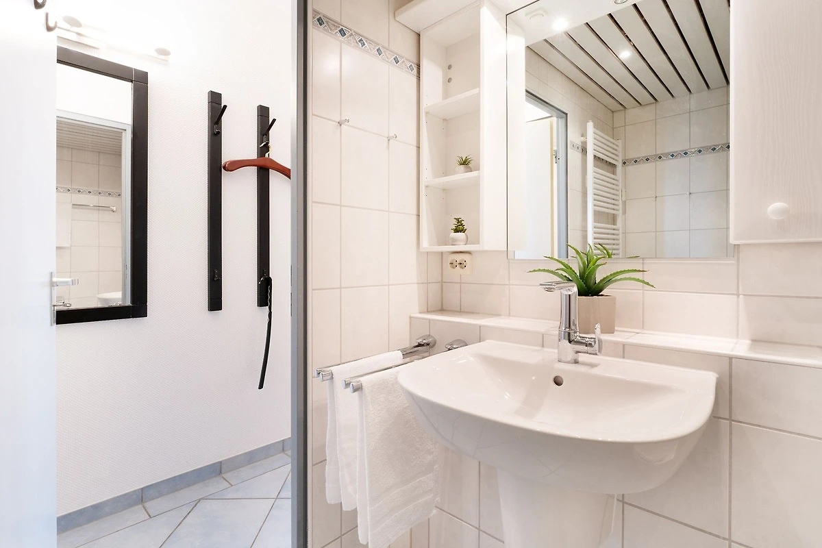 Ein PKW-Tiefgaragenstellplatz ist für Sie reserviert (max. 185 cm Durchfahrtshöhe). Die Nutzung des Hallenbades, der drei Gemeinschafts-Dachterrassen mit Meer- und Landblick sowie des Tischtennisraumes sind für Sie selbstverständlich kostenlos. Ihre mitgebrachten Fahrräder können Sie in einem der 2 Kellerräume in Haus A oder in dem Fahrradraum im Erdgeschoss zwischen Haus A und B abstellen. In Haus D befindet sich auf den Etagen 1 - 4 je ein Gemeinschaftswaschraum mit Waschmaschine und Trockner (gegen Gebühr/Münzgeräte).
