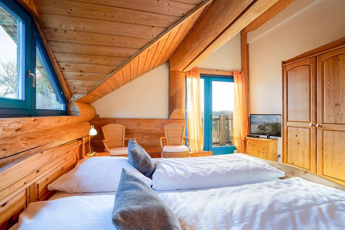 Schlafzimmer 4 (OG): 1 Doppelbett (2x 90x200 cm), TV, Kleiderschrank