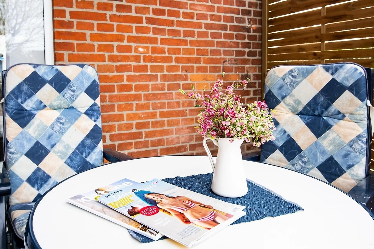 Die Ferienwohnung ist Minimalistisch und zweckmäßig eingerichtet. Die Küche ohne Tageslicht. Das Badezimmer genügt den Ansprüchen. Die Terrasse ist mit Blick auf den Parkplatz und gen Norden. 2 Stühle und 1 Tisch befinden sich hier. Der Weg zum Strand ist kurz.