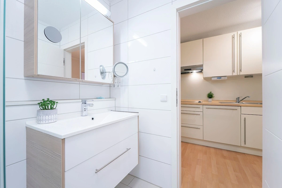 Eine sehr schöne Wohnung, liebevoll eingerichtet und von der Lage her einfach Super. Es fehlt ein Backofen , ansonsten ist alles da was man braucht. Wer E-Bikes hat kriegt Probleme diese in den Fahrradkeller zu bringen. (enge schmale Treppe).