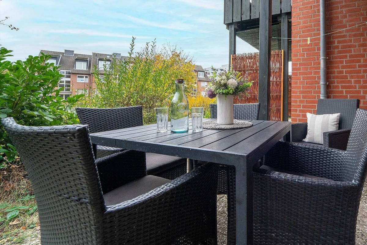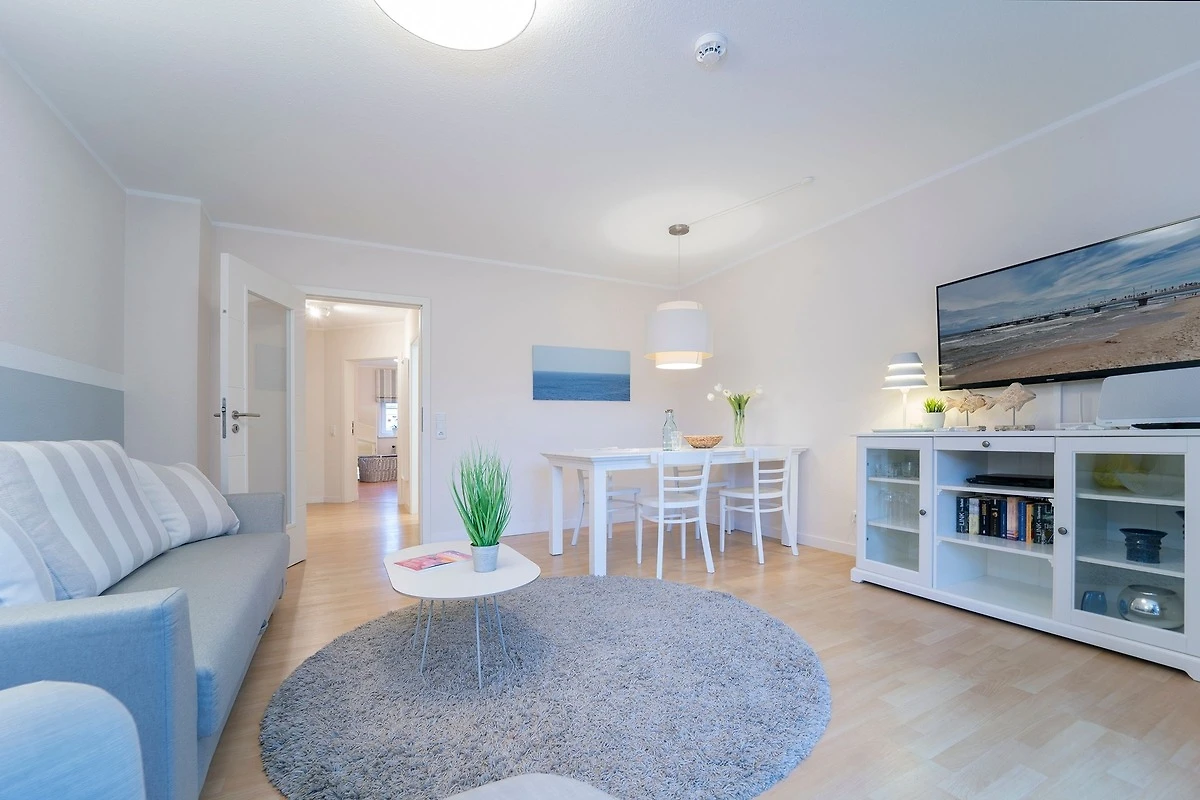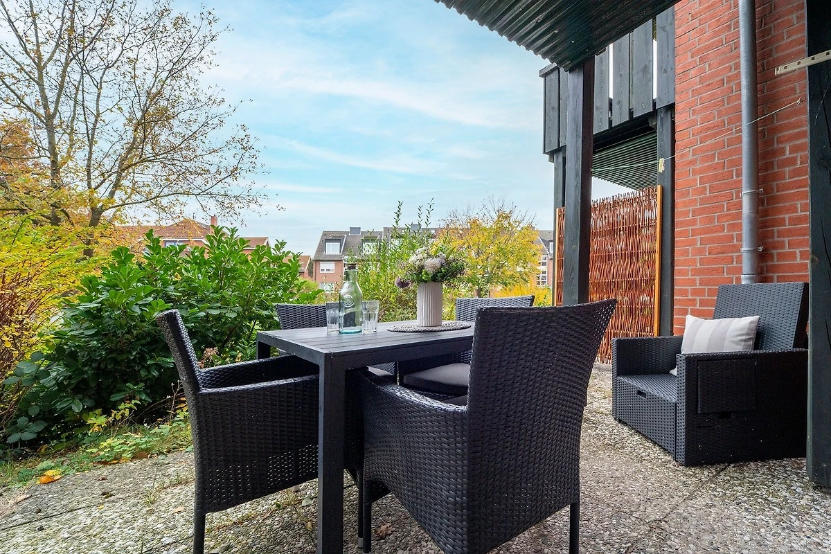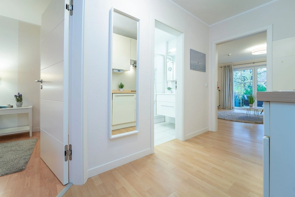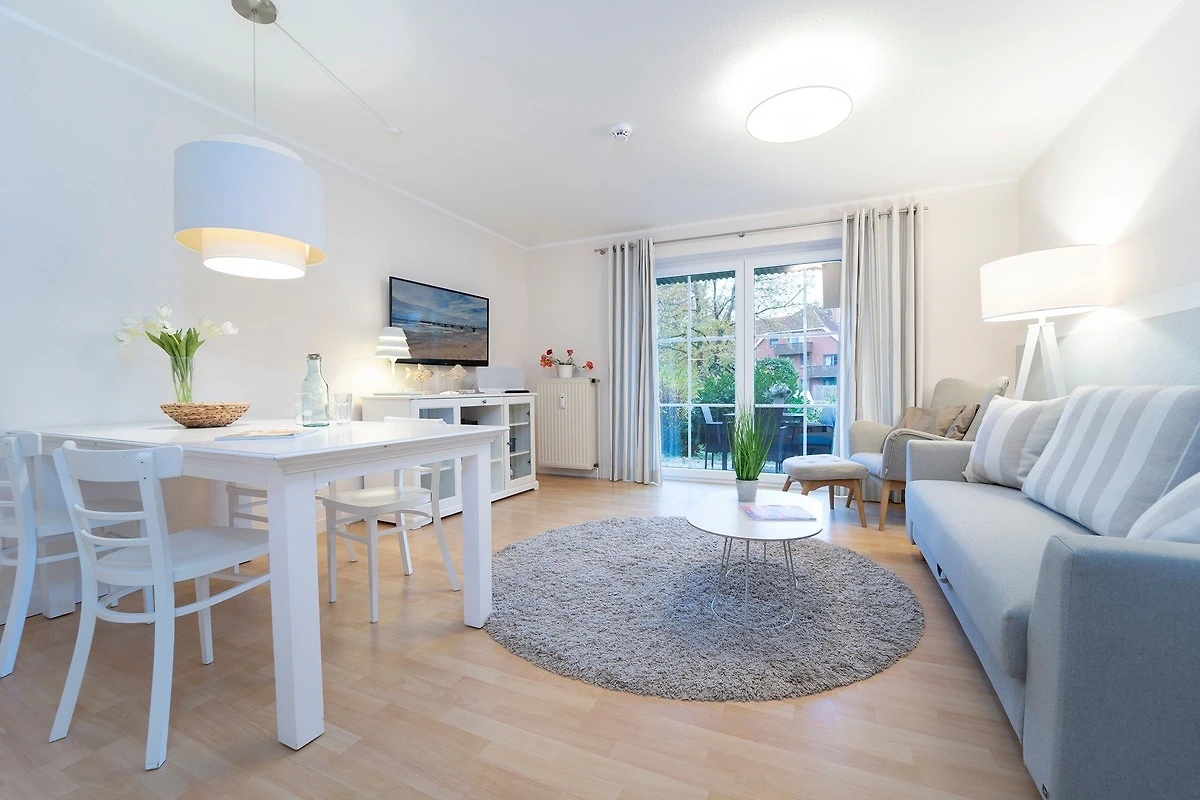 Wir begrüssen Sie in dieser stilvollen 3-Zimmer-Ferienwohnung im Erdgeschoss, die auf ca. 65 m² Platz für bis zu 4 Personen bietet.