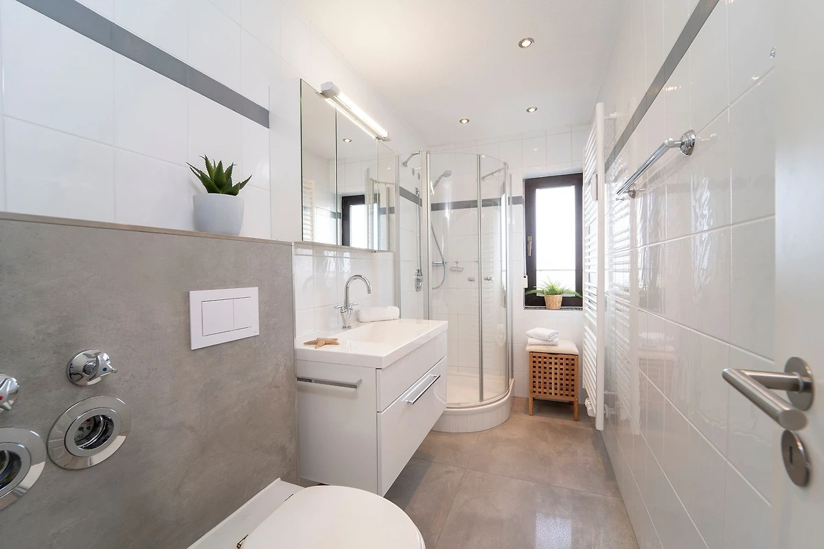Wohnung war bis auf das Schlafzimmer und Bad sehr gut. Schlafzimmer war viel zu eng. Man musste seitlich gehen und den Kopf einziehen, um am Fussende auf die andere Seite des Bettes zu gelangen. An der Wand hing noch der Fernseher. Das Bad ziemlich eng, eine verhältnismäßig kleine Dusche.