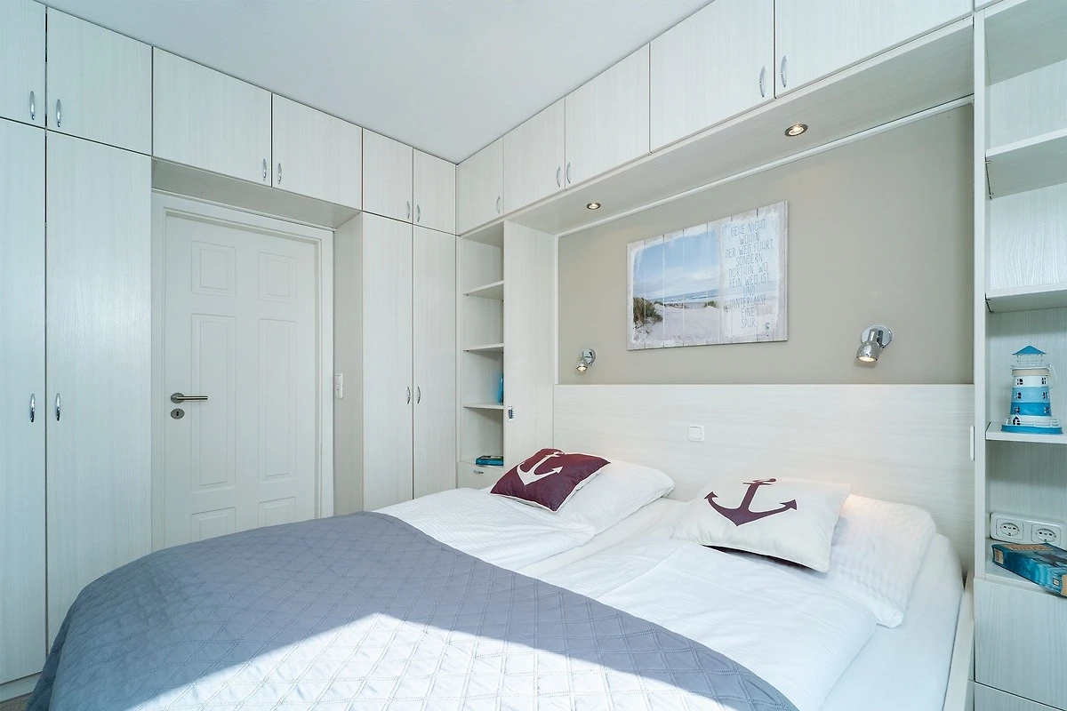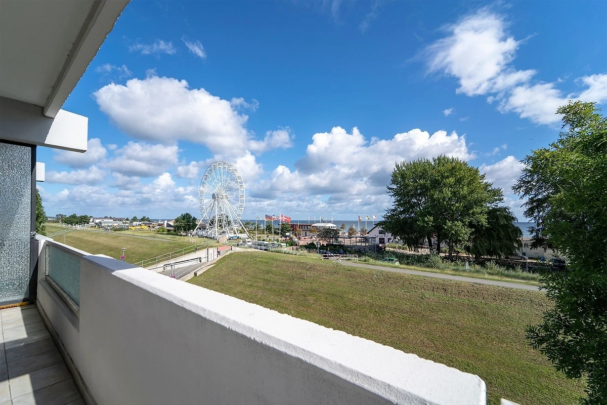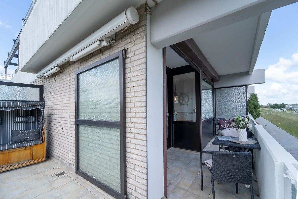 Zauberhafte, frisch-renovierte 49 m² Wohnung mit Meerblick, aufgeteilt in 2 Zimmer, sowie schöner Einbauküche mit allem was das Herz begehrt. Das Wohnzimmer ist mit einer hochwertigen Schlafcouch (180 x 200 cm) eingerichtet von der sie ganz entspannt auf dem grossen Panorama Flachbildschirm relaxen können. Zu der Ferienwohnung gehören ausserdem ein eigener Strandkorb auf dem Balkon und selbstverständlich verfügt sie auch über WLAN.