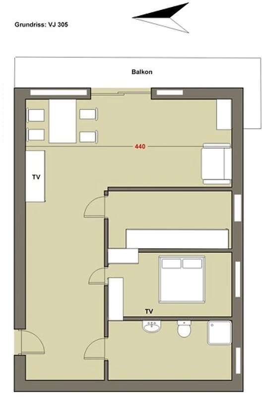 Wohnzimmer: 1 Schlafcouch (180 x 200 cm), TV, Verdunkelungsmöglichkeit