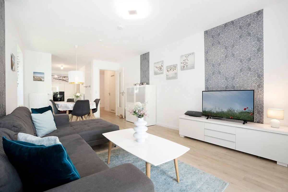 Treten Sie in diese 3-Zimmer-Ferienwohnung ein und lassen Sie sich von einer modernen, grosszügigen Wohnwelt verzaubern - Ein wahrer Urlaubs-Traum für bis zu 4 Personen. Dieses Feriendomizil ist barrierearm und eignet sich daher ebenfalls für Menschen mit Bewegungseinschränkungen.