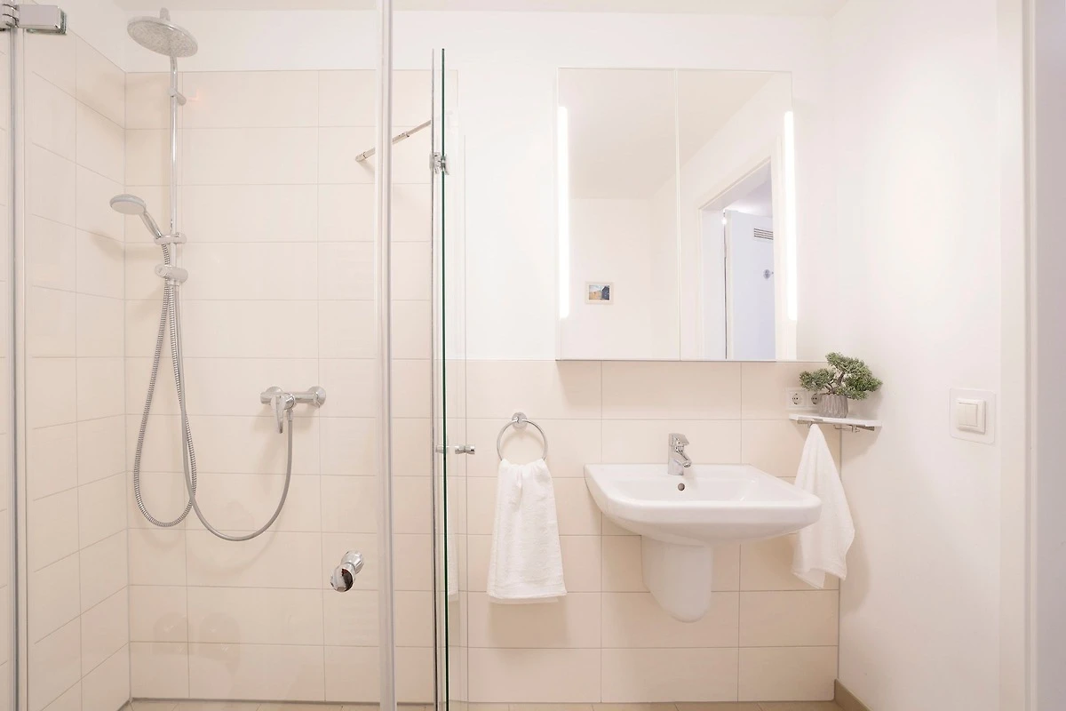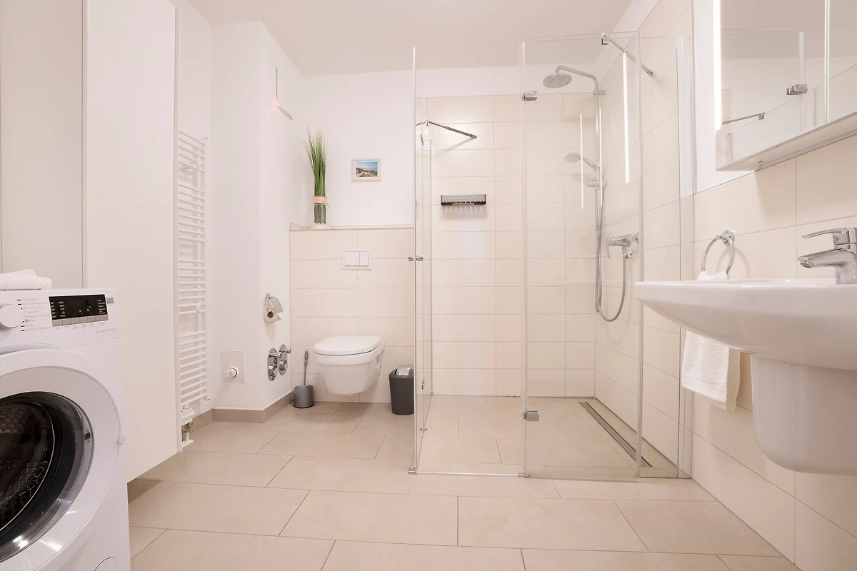 Eine mit Liebe eingerichtete Ferienwohnung mit hellem und modernen Inventar in Top Lage. Es fehlte an fast gar nichts. Allerdings sollte man an Kleinigkeiten für Senioren auch denken. Es wäre ratsam in der Dusche eine Rutschmatte und Haltegriffe anzubringen + einen kl. Hocker reinzust.(sehr glatt)