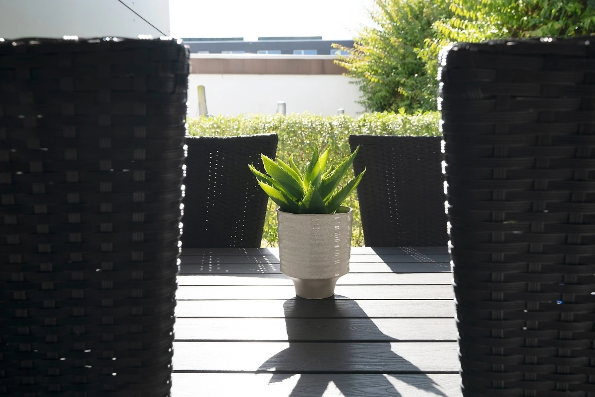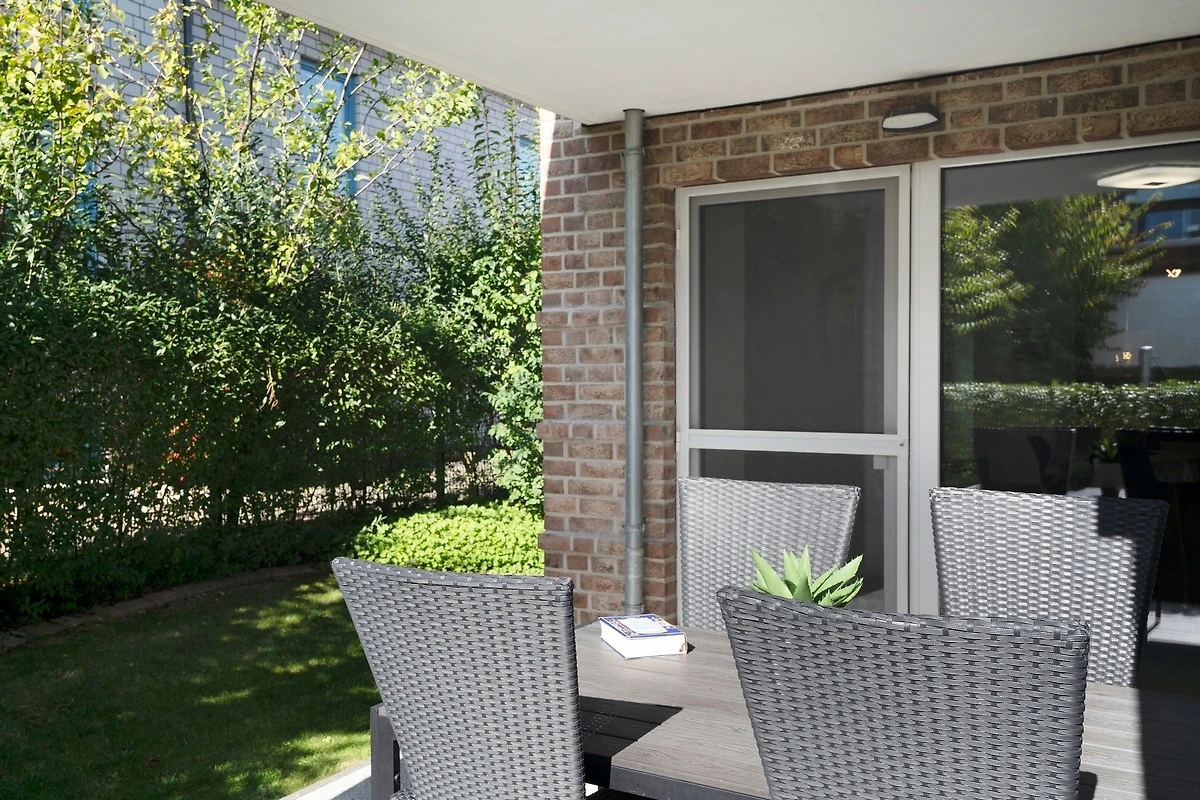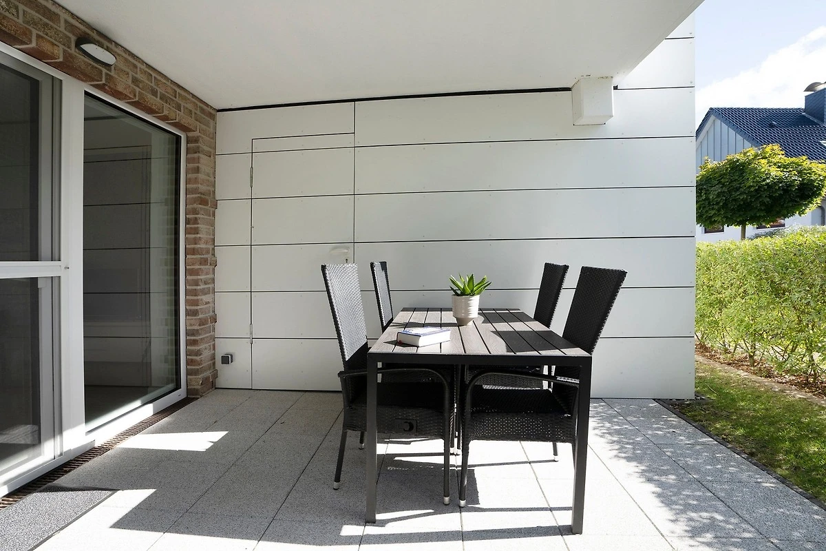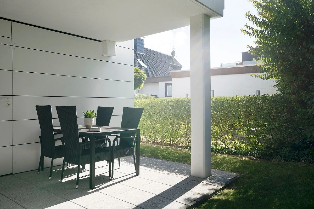 Wunderschöne, moderne Ferienwohnung. Tolle Terrasse mit eigenem Abstellraum für Fahrräder, etc. Kurzer Weg zum Strand.