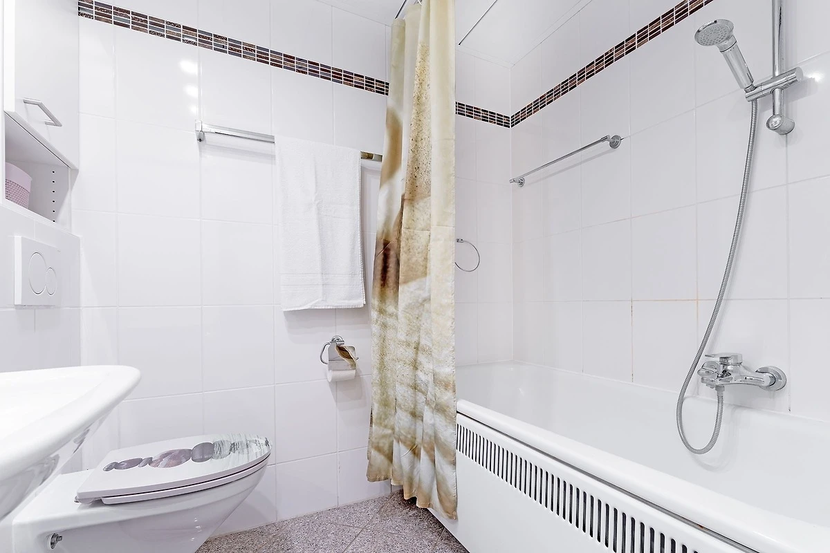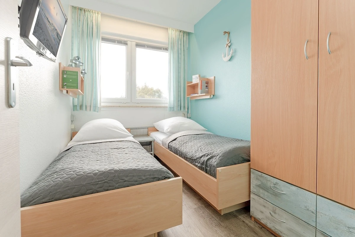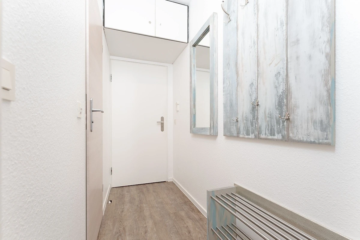 Der helle und freundliche Flur bietet Ihnen mit der Garderobe und dem Schuhschrank die Möglichkeit, Ihre Jacken und Schuhe abzulegen. Geradeaus gelangen Sie in den grossen Wohn- und Schlafbereich mit Doppelbett (2 x 90x200). Der grosse Kleiderschrank dient auch als Raumteiler zwischen dem Wohn- und Schlafbereich. Im Wohnbereich befindet sich eine gemütliche Sitzecke mit Flachbildfernseher und direktem Zugang zum möblierten Balkon. Die separate Küche mit Esstisch ist gut ausgestattet und bietet viele Extras. Das separate Schlafzimmer hält 2 Einzelbetten (je 80x200 cm), einen Kleiderschrank sowie einen weiteren Fernseher für Sie bereit. Das Badezimmer mit Badewanne rundet diese Wohnung perfekt ab. Ein absolutes Highlight sind hier die Türen mit Bullaugen. Der WLAN-Anschluss ist selbstverständlich inklusive.