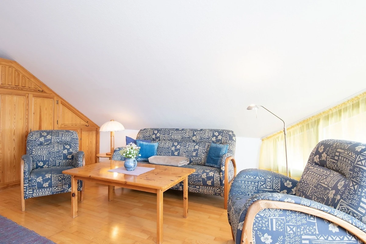 Der Flur hält ausreichend Stauraum für Ihre Jacken und Schuhe bereit. Der Wohn- und Essbereich ist geräumig und durch die grosse Fensterfront stets hell und lichtdurchflutet. Nehmen Sie Platz auf dem gemütlichen Sofa oder einem der zwei bequemen Sessel und lassen Sie die Abende vor dem Fernseher ausklingen. Vom Wohnbereich aus gelangen Sie auf den kleinen, möblierten Südbalkon, der zu erholsamen Stunden einlädt. Die moderne Küche mit hellen Fronten ist z. B. mit einem 4-Platten-Cerankochfeld, einem Geschirrspüler und einer Senseo-Kaffeemaschine gut ausgestattet. Die Wohnung verfügt über zwei separate Schlafzimmer: Eines mit einem Doppelbett (2x 90x200 cm) und eines mit zwei getrennt stehenden Einzelbetten (je 90x190 cm). Die Velux-Fenster in beiden Schlafzimmern lassen sich durch elektrische Rollläden angenehm abdunkeln, sodass Sie im Urlaub Ihren wohlverdienten Schlaf erhalten. Im innenliegenden, hell gefliesten Badezimmer erwartet Sie eine Dusche und sogar ein beheizbarer Handtuchhalter. Der WLAN-Anschluss ist selbstverständlich inklusive. Zusätzlich steht Ihnen der gemeinschaftlich genutzte Garten für eine ausgiebige Runde Federball oder gesellige Stunden im Freien zur Verfügung.