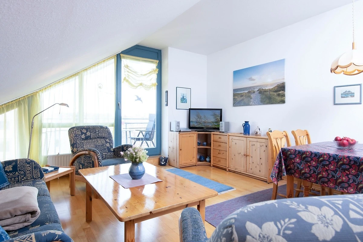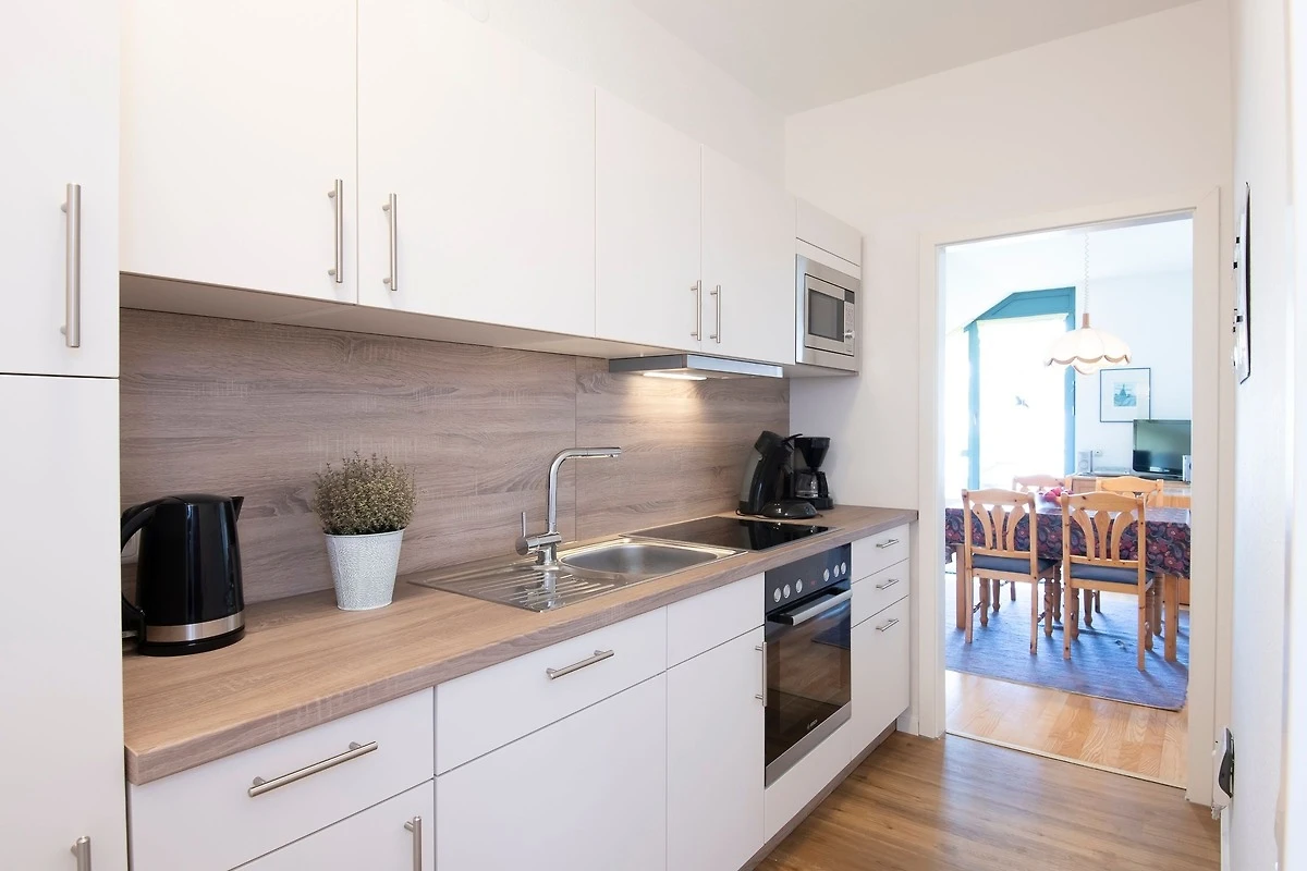 Diese geschmackvoll eingerichtete 3-Zimmer-Ferienwohnung wurde im Frühjahr 2021 renoviert. Die Wohnung befindet sich in der 2. Etage und bietet Platz für bis zu 4 Personen. Geniessen Sie den seitlichen Blick auf die Ostsee vom kleinen Südbalkon.