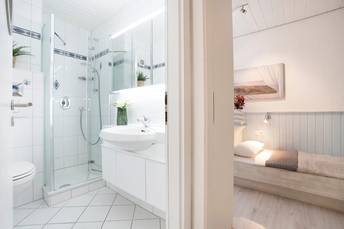 Es war alles perfekt - hier einige Kleinigkeiten, die die Qualität des Aufenthalts aber nicht gemindert haben: - Bei allen 3 Fernsehgeräten wäre eine gleiche Sendereinstellung - zumindest der Wichtigsten - sinnvoll - hierzu eine schriftliche Übersicht würde dies in gelungener Weise abrunden. - Der Durchgang zur Dusche könnte unten im Bereich der anstoßenden Fließe bzw.durch ein Höhersetzen der Duschtür verbreitert werden. - Der Zugang zur Wohnung führt über eine kleine Stolperkante auf dem Flur. Eine Kennzeichnung wäre hier zu empfehlen.