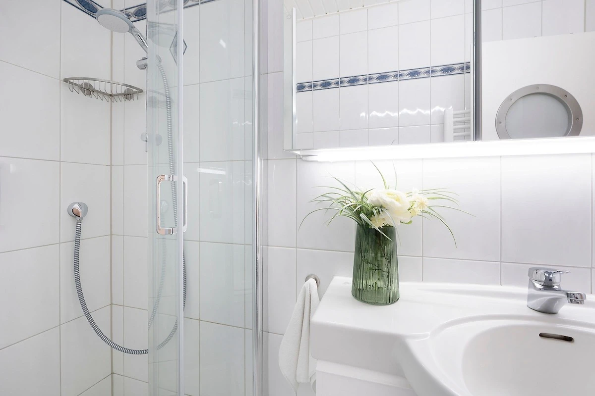 Insgesamt waren wir leider ziemlich unzufrieden Für eine Familie mit einem Kind ist diese Unterkunft definitiv zu klein Außerdem lässt die Sauberkeit (Bad, und Ausstattung) sehr zu wünschen übrig, was wir von Kraushaar überhaupt nicht gewohnt sind. Das Haus 4 Jahreszeiten (Hausflur) hingegen sehr gepflegt Lage des Hauses ist super Direkt am Deich mit Meerblick