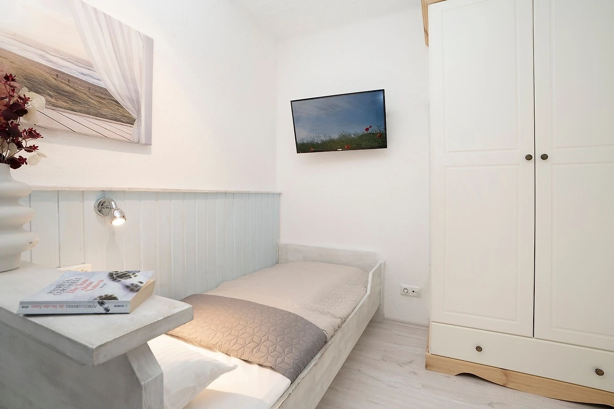 Schlafzimmer:2 Einzelbetten (2x 90x200 cm), TV, Kleiderschrank