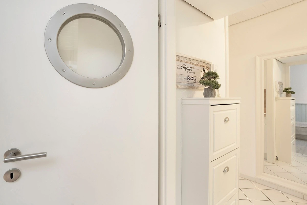 Die Schlüsselübergabe erfolgt über einen Tresor am Kraushaar Ferienwohnungen Servicebüro, Lange Wiese 4, 23747 Dahme.