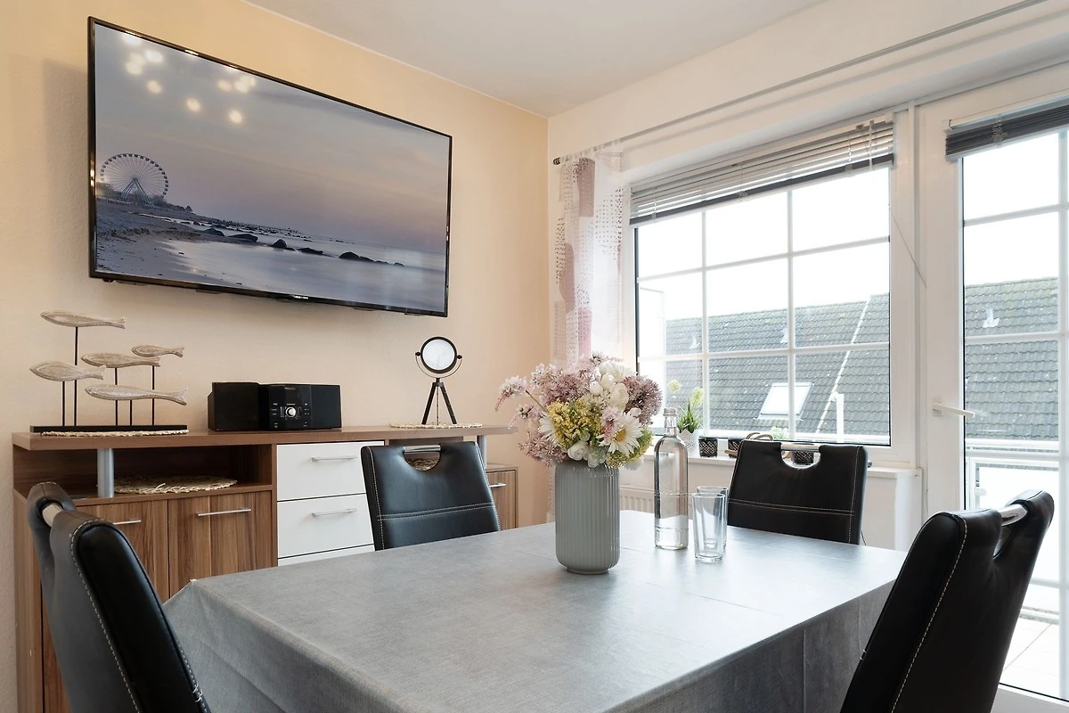 Preisleistung sehr gut Zwei Schlafzimmer Top Großes Wohnzimmer mit großen Fernseher toller Couch gut mit 3 Personen zu benutzen Schöner Esstisch zum gemütlichen Essen . Kleiner toller Balkon Parkplatz vorm Haus Haus liegt in ruhiger Lage . Alles gut zu Fuß zu erreichen 8–10 min zum Strand Höhe Dünnenpark . 10 min bis zur Fußgängerzone Kirchstrasse 10-15 min bis zur Seebrücke Aldi Rewe in 5 min zu erreichen. Taxi 10 Euro von Seebrücke bis zur Wohnung . Online Kommunikation und Abwicklung mit Agentur top . Was ich aber nicht verstehe das es keinen eigenen Techniker der Agentur für Internet Probleme gibt . Sondern einem ein Kontakt zum Besitzer organisiert wird , freundlicher Weise hat der sich sogar gemeldet nach etwas Zeitverzögergung und das Problem konnte mit Hilfe des Bewohners in Wohnung 8 gelöst werden dort steht der Router :-) Was nicht so toll ist, ist das Bad. Toilette nicht geeignet für Menschen über 1,85 . Gut man gewöhnt sich daran 6 Tage diagonal auf der Toilette zu sitzen ( schön ist anders ) Auch das umstellen von Brausenkopf auf Regenwald Dusche benötigt etwas Kraft. Schade auch das es für den Brausenkopf keine Halterung gibt. War alles ne Erfahrung fürs Leben . Fazit Preis Leistung Lage Ausstattung passt . Hoffe Besitzer ändert die Paar Sachen dann ist es eine Top Wohnung ️