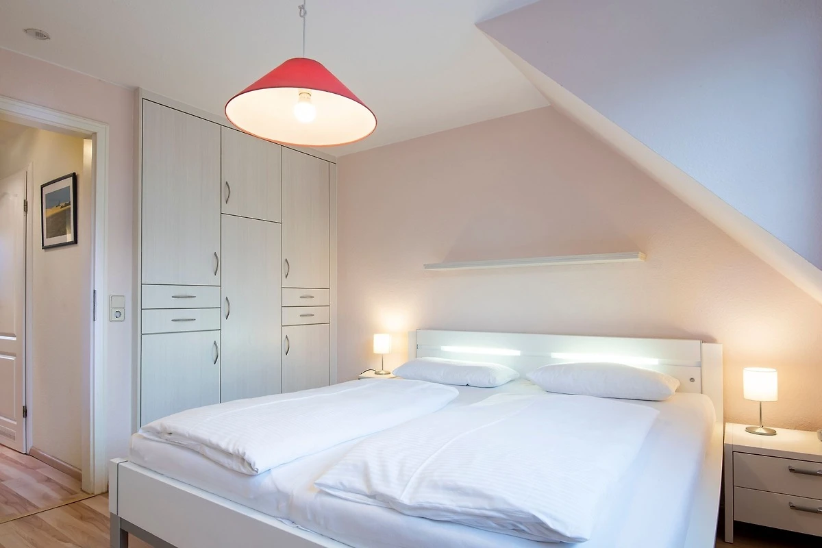 Schlafzimmer 1: 1 Doppelbett (2x 90x200 cm), Kleiderschrank, Verdunkelungsmöglichkeit