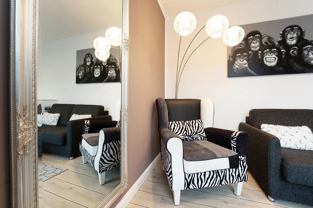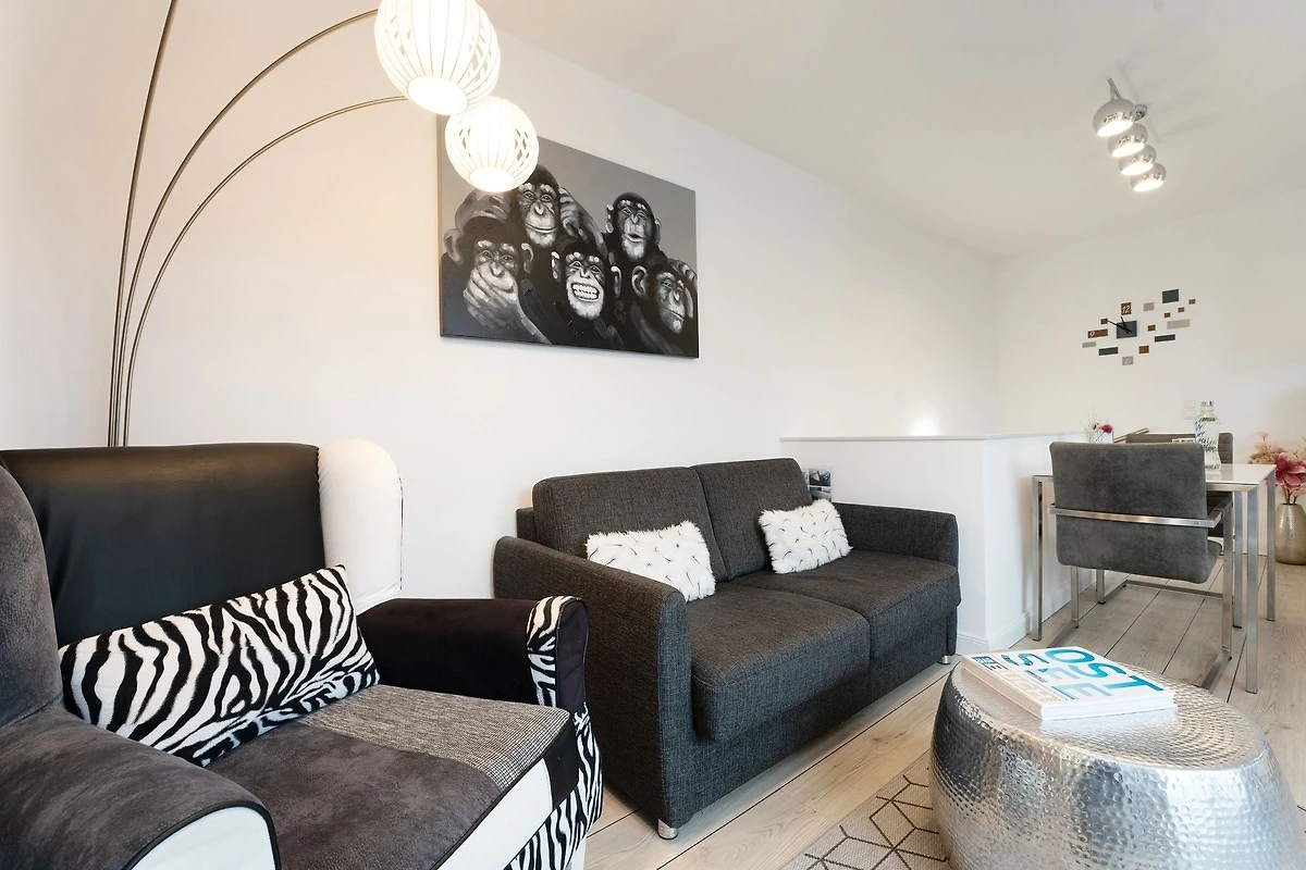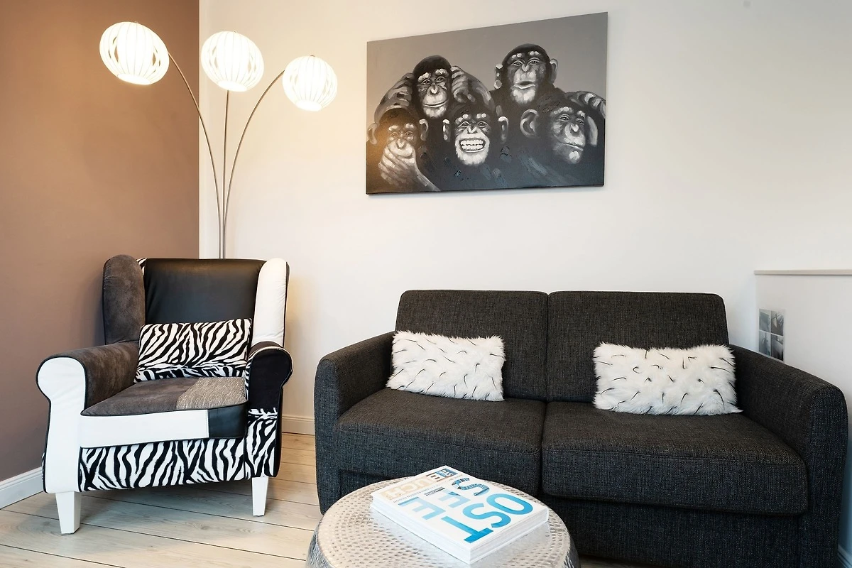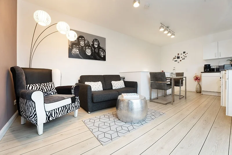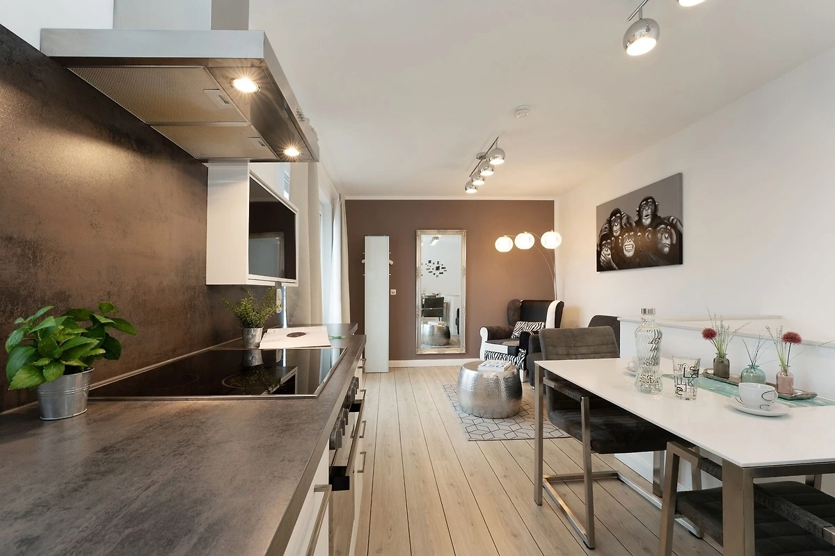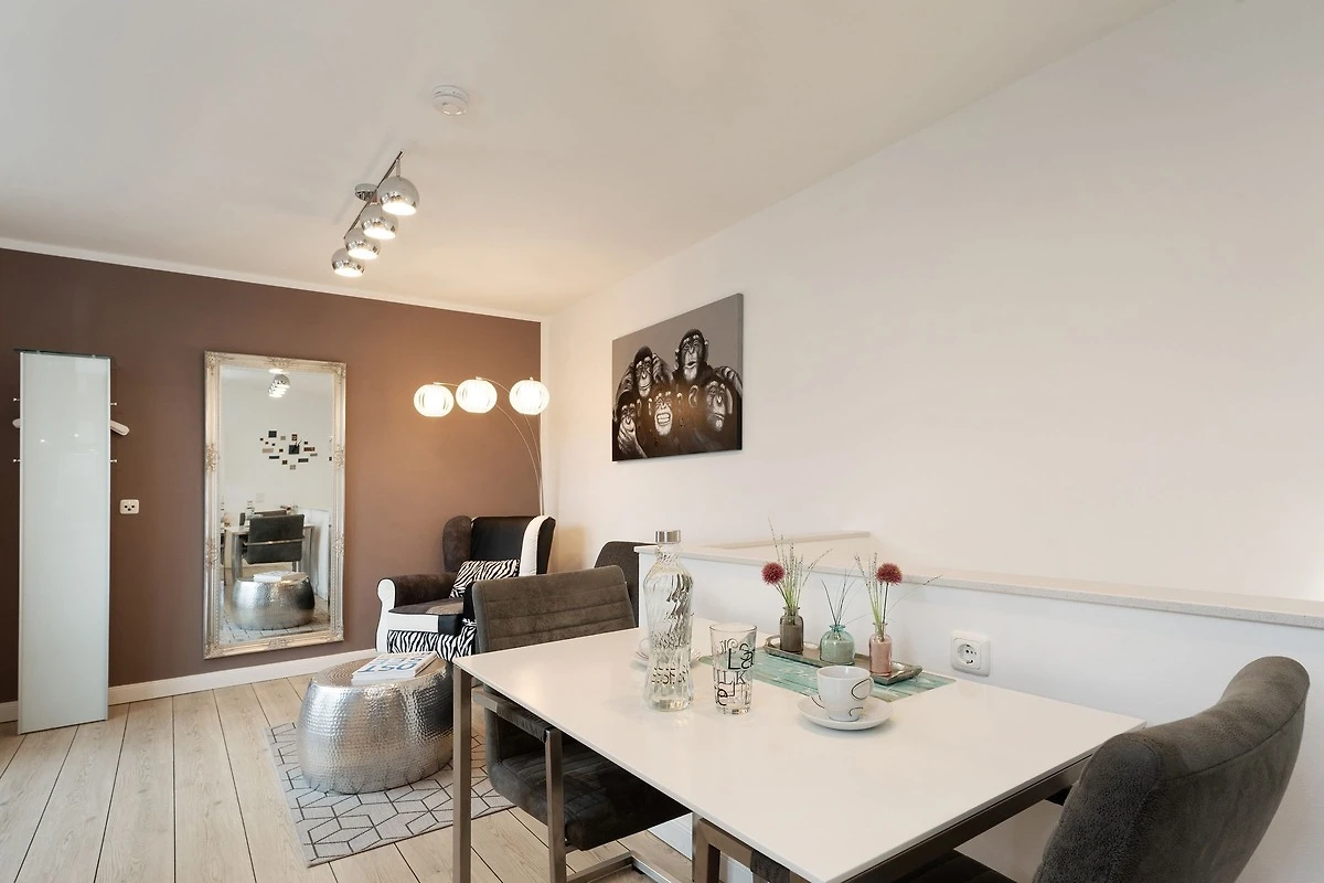 Perfekt kombinierte Farben, hochwertige Möbelstücke und eine moderne Ausstattung machen diese ca. 39 m² grosse Wohnung für 2 Personen zu einem absoluten Schmuckstück!