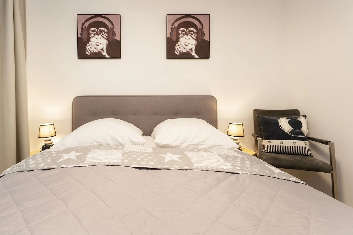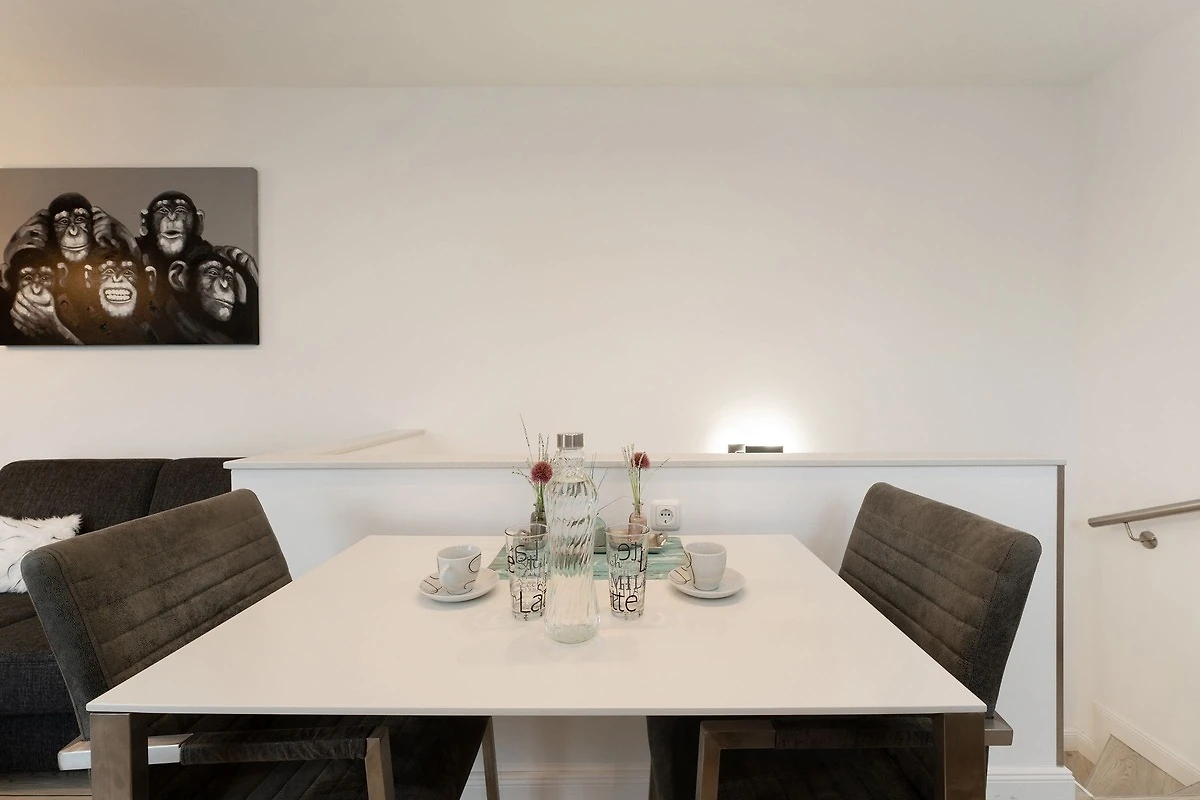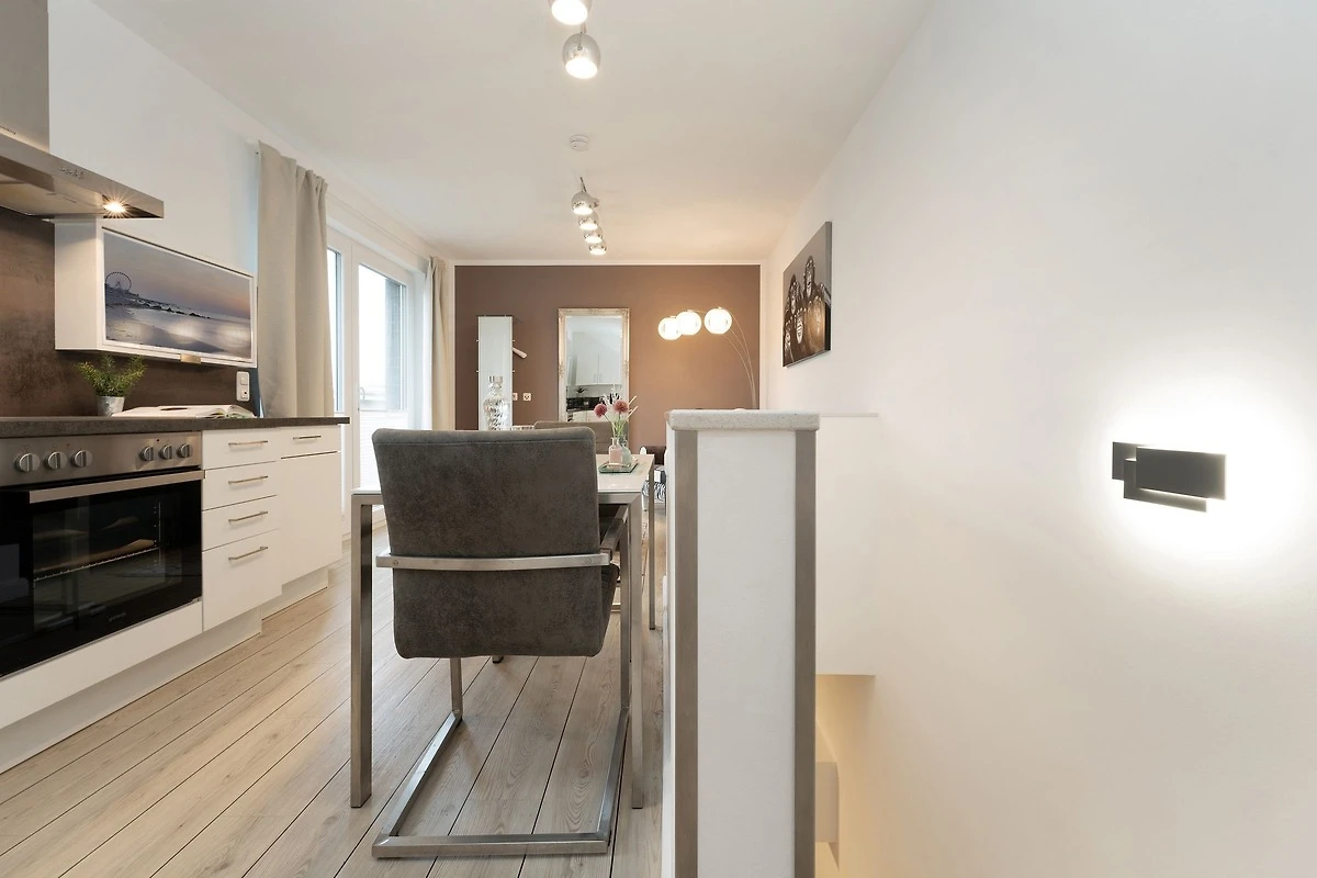 Eine schöne Wohnung auf 2 Etagen. Bad und Schlafzimmer sind in der unteren Etage. Alles ist neu und modern eingerichtet. Uns hat es dort gut gefallen. Man wohnt zentral und könnte auch ohne ein Fahrrad alles fussläufig erreichen! Wir kommen sehr gerne wieder!