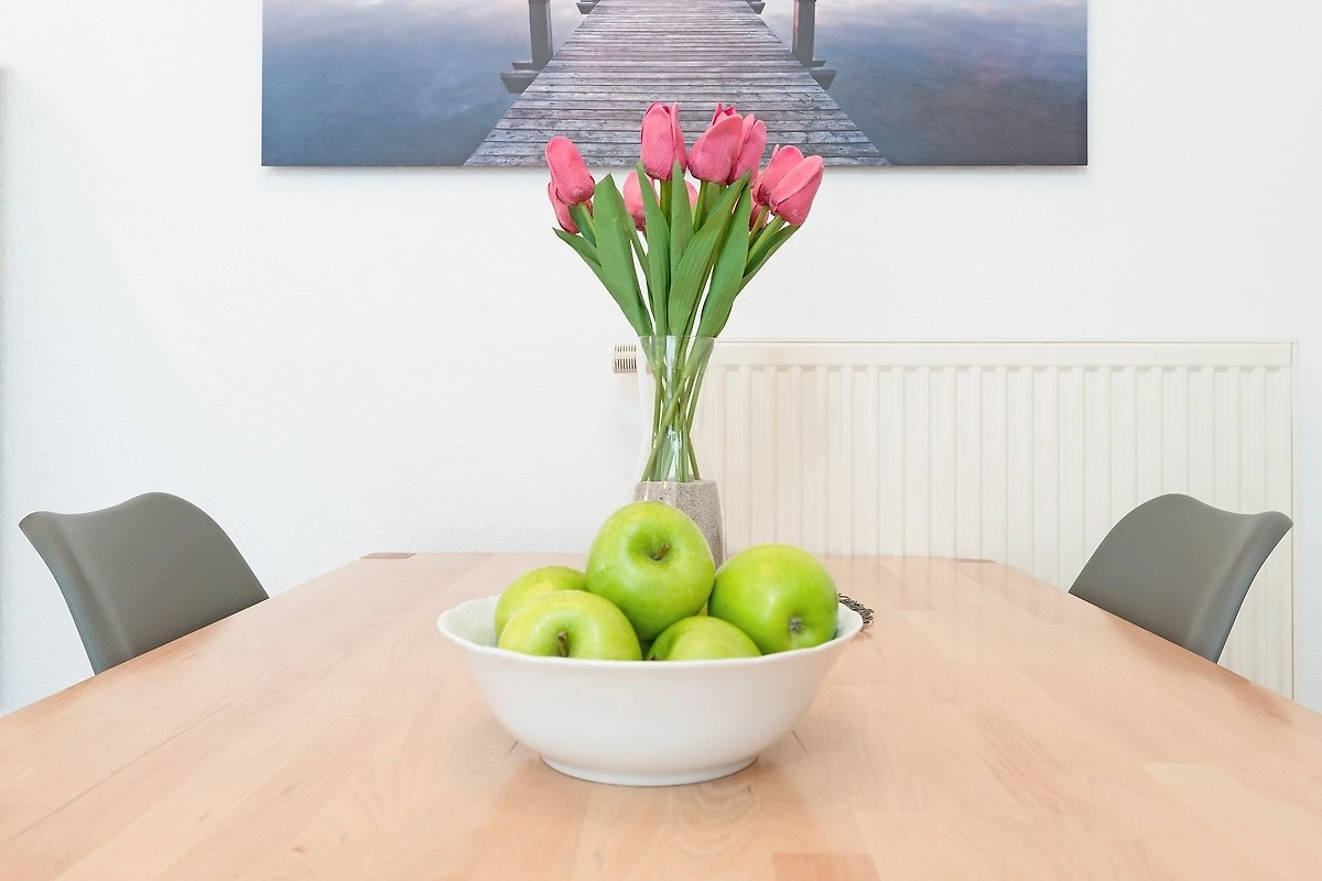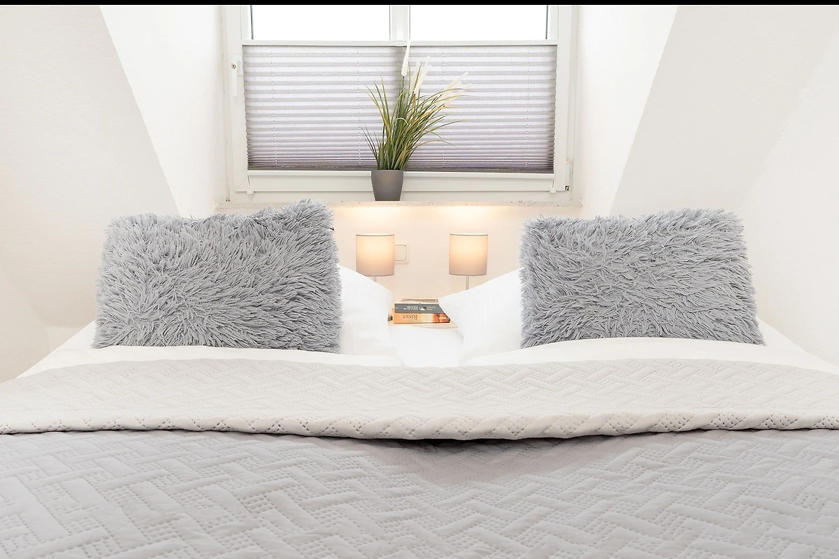 Die Wohnung ist trotz ihrer zentralen Lage sehr ruhig gelegen. Für zwei Personen ist sie wirklich groß genug. Bei einer Belegung mit vier Personen wird es aber schon etwas eng. Das parken im dazu gehörigen Parkhaus ist leider nur bis zu einer Fahrzeughöhe von 1,50m möglich.