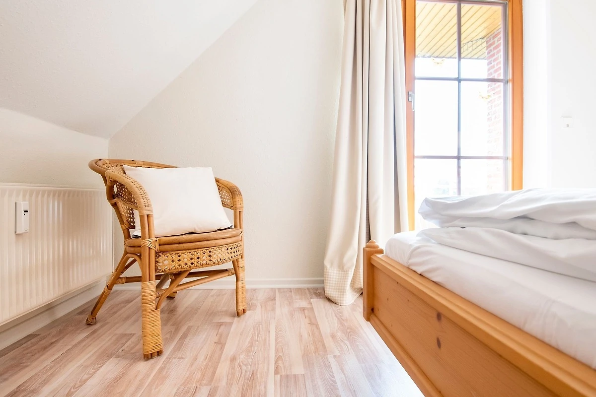 Diese charmante Ferienwohnung im zeitlos-modernen Landhausstil befindet sich im 1. und 2. OG des idyllisch gelegenen Landhauses. Die Wohnfläche des Feriendomizils umfasst ca. 105 m², erstreckt sich über 2 Ebenen und offeriert 3 Zimmer, davon ein helles, offenes Wohnzimmer und 2 separate Schlafzimmer.