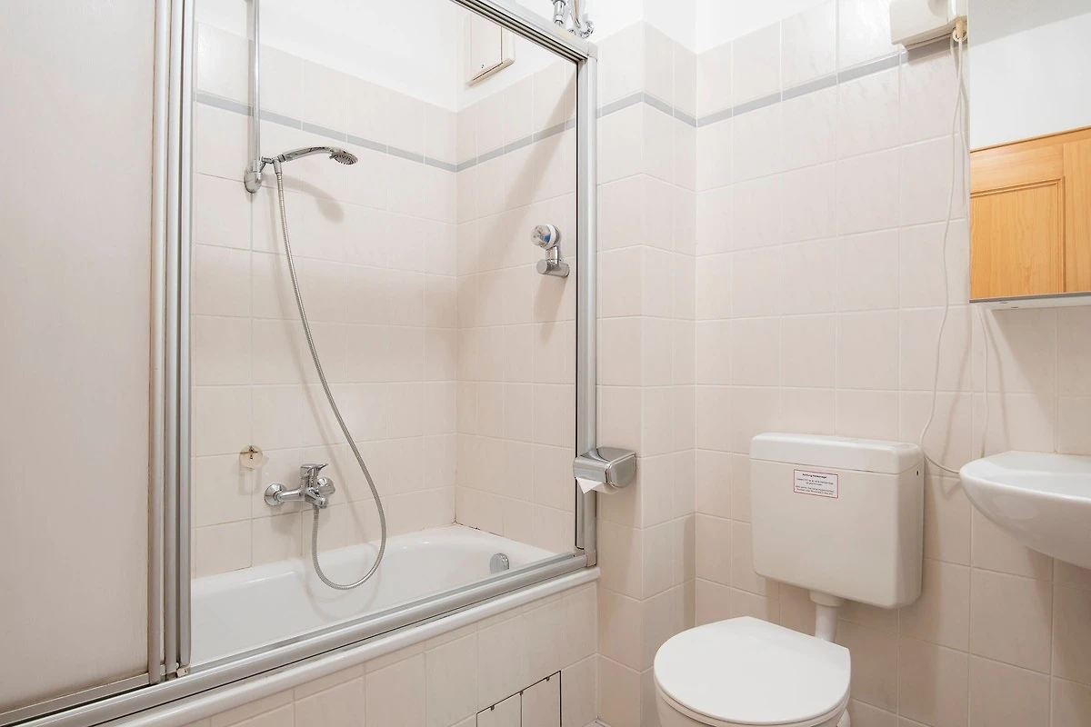 Das Haus ist in die Jahre gekommen. Fassade und Entree. Wohnung 11 hat einen grandiosen Blick auf den See. Ist für Hunde gut geeignet. Badezimmer ist renovierungsbedürftig. Duschen in der Badewanne -Rutschgefahr. Warmwasser ist nur sehr schwer zu regulieren. Kein WLAN! Küchenausstattung dürftig!