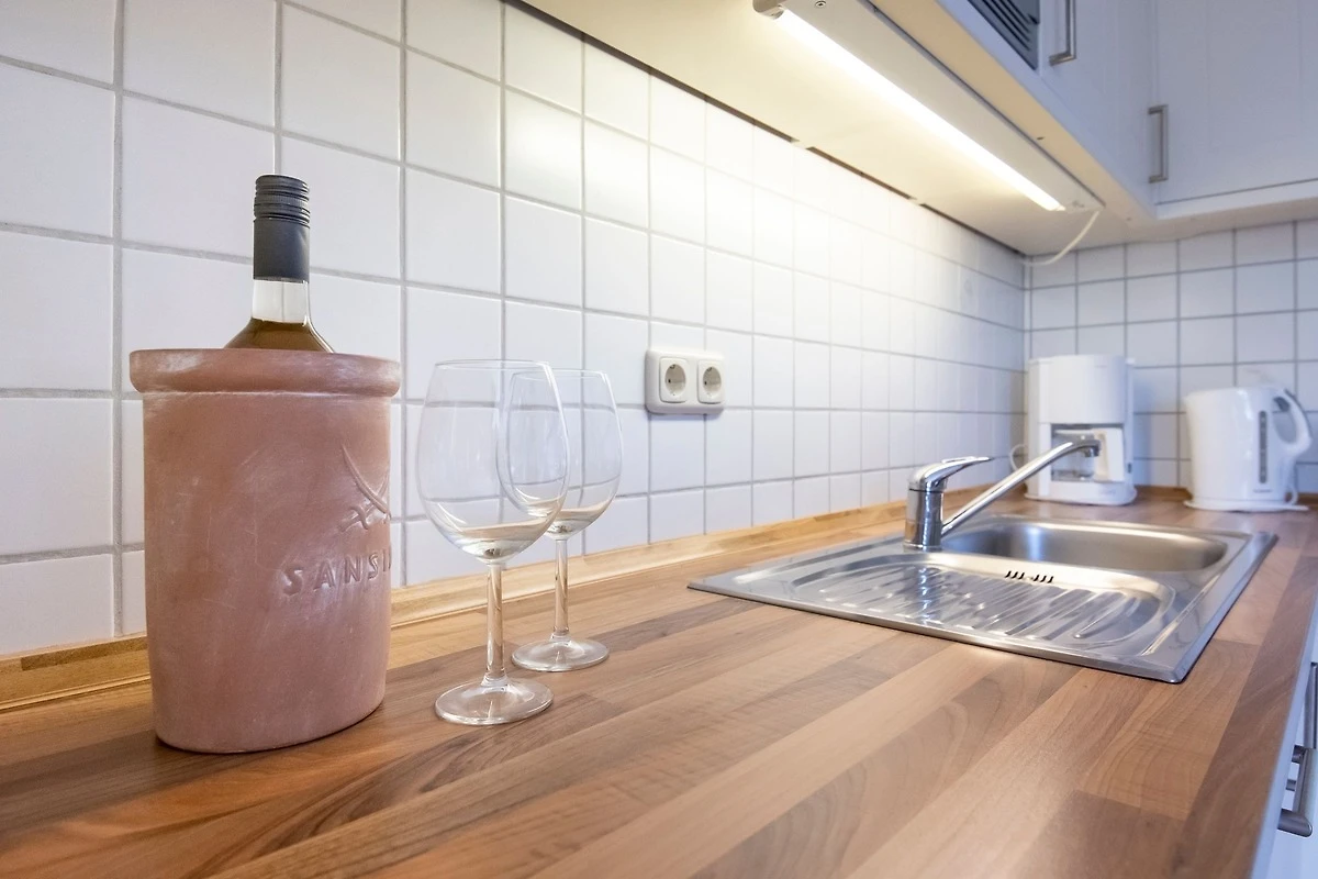 Ihren PKW parken Sie bequem auf dem für Sie reservierten PKW-Aussenstellplatz direkt am Haus. Auch Ihre Fahrräder können Sie sicher im Fahrradkeller unterbringen oder aussen am Haus parken. Alle Gäste des Landhauses kommen nach Bedarf in den Genuss der Gemeinschaftssauna und des Gemeinschaftsgartens. Der WLAN-Anschluss ist inklusive.