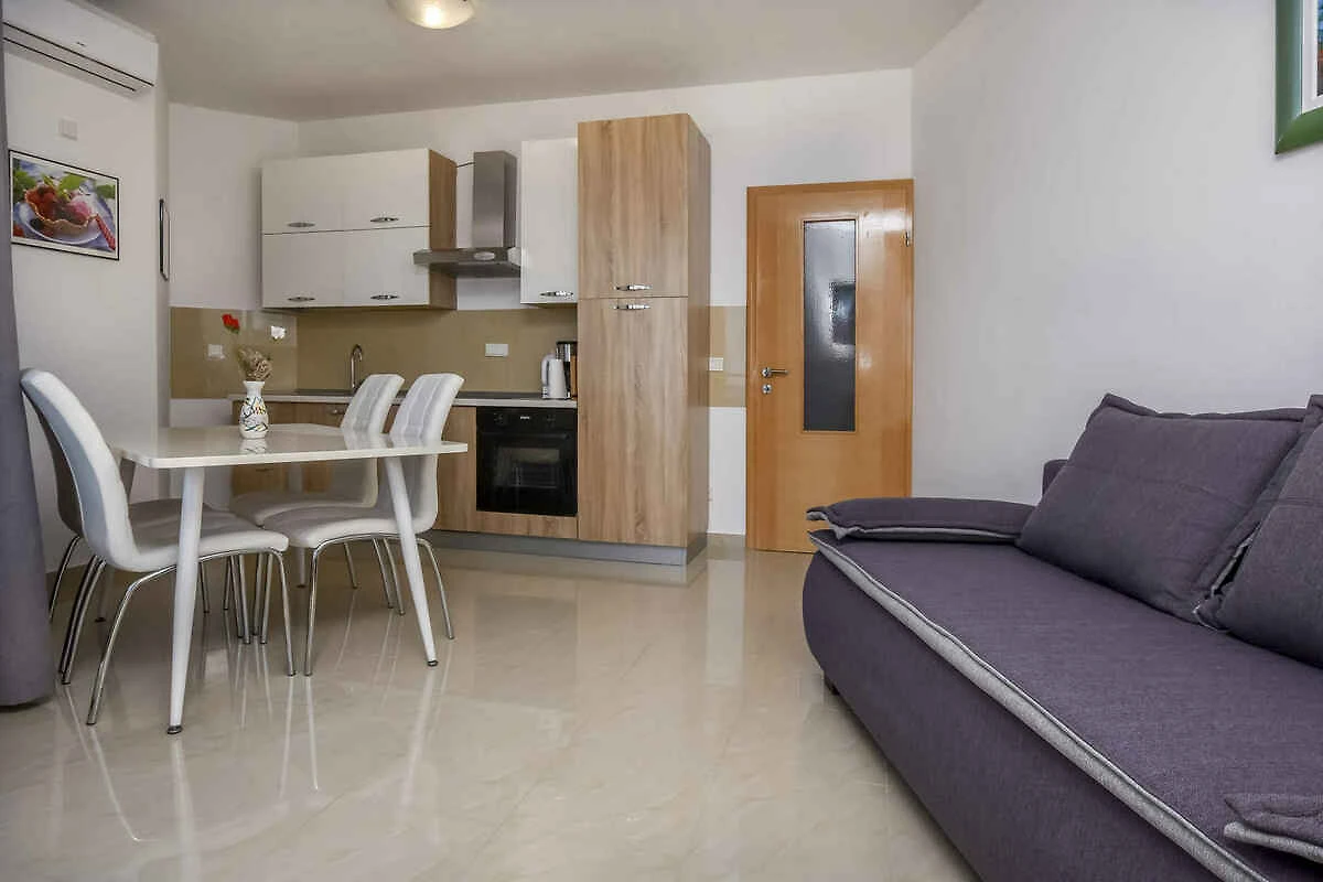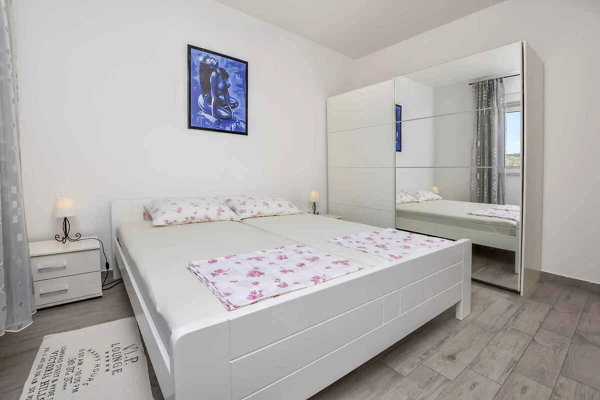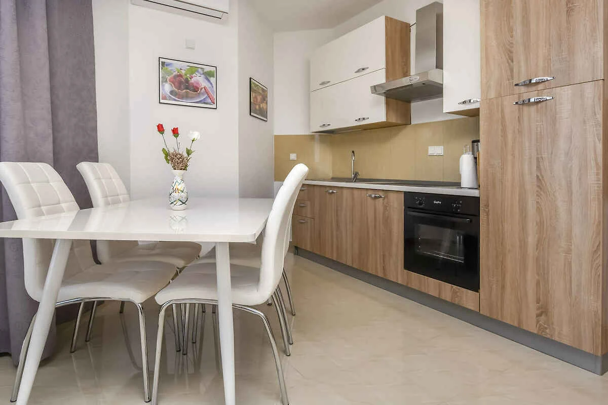 Ražanj. Die Ferienwohnung befindet sich auf einem geschlossenen Gartengrundstück, von einer Mauer begrenzt. Der Vermieter wohnt im Haus. Die Zufahrt erfolgt über eine Nebenstrasse. Parkplatz auf der Strasse vor dem Haus.