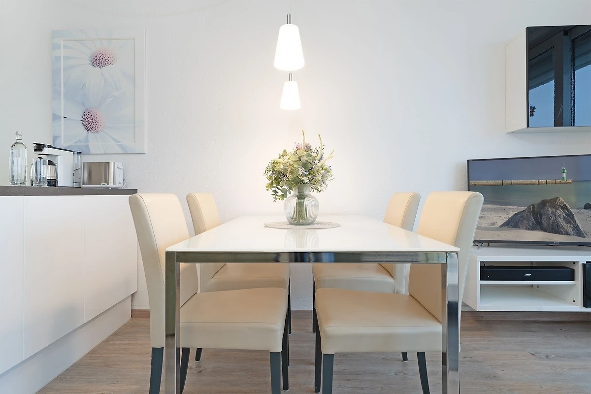 Es war etwas schwierig, die Wohnung vom Parkplatz, aus zu finden. Die Wohnung selbst ist schön hell und freundlich eingerichtet. Es war alles vorhanden was man als Familie mit 2 Kindern braucht. Super fanden wir das kleine Extrazimmer mit Bett und kleinem Schreibtisch. Da hat sich unser jugendlicher Sohn eingenistet und seine Ruhe genossen. Die Betten waren alle bequem und an den Fenstern gab es Fliegengitter (außer im Wohnzimmer). Der Ausblick von dem großen Balkon ist wunderschön. Die Lage der Wohnung ist perfekt. Man ist schnell am Strand und zugleich direkt an der Strandpromenade wo es zahlreiche Geschäfte und Restaurants gibt. Für die frischen Brötchen am morgen sorgt der Bäcker, der gut zu Fuß erreichbar ist. Zu der Wohnung gehört ein Strandkorb, so hat man es auch am Strand gemütlich. Das W-Lan war etwas schwach, aber man macht ja Urlaub. Wir hatten eine tolle Woche mit großem Wohlfühlfaktor.