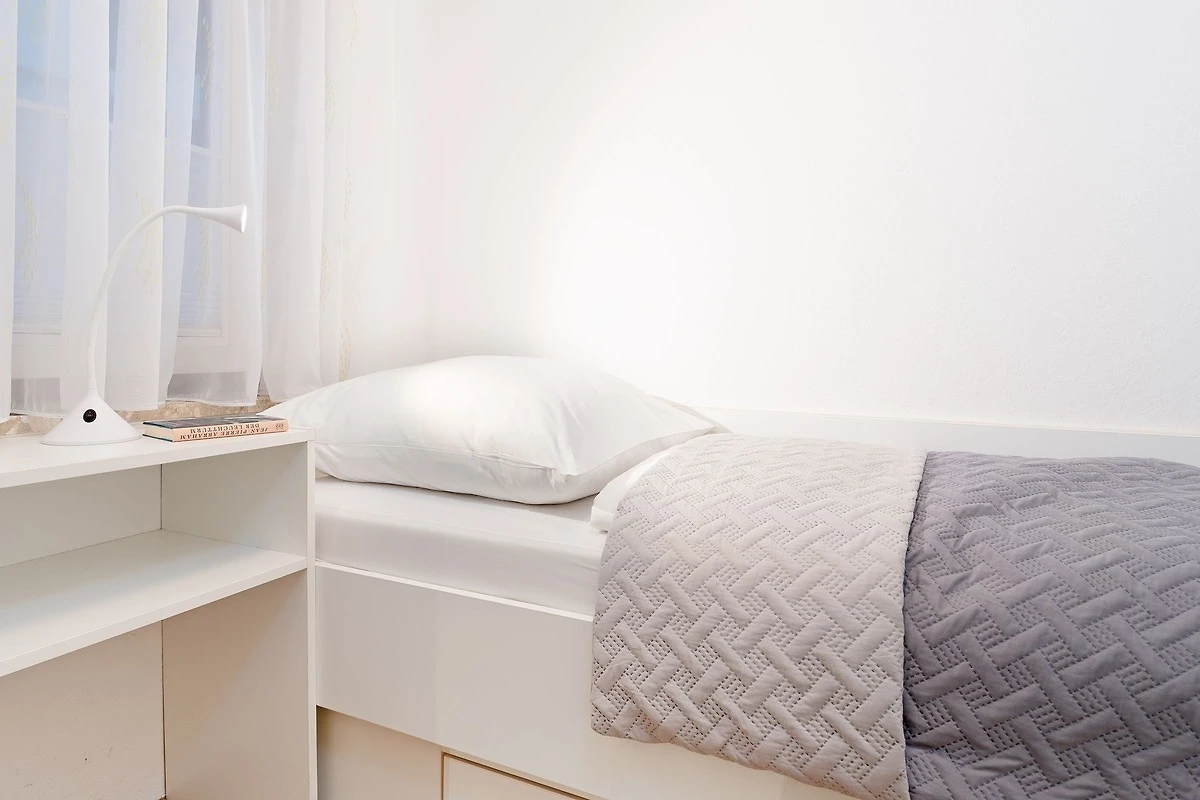 Schlafzimmer 2: 1 Einzelbett (80x200 cm), Verdunkelung: Aussenjalousie