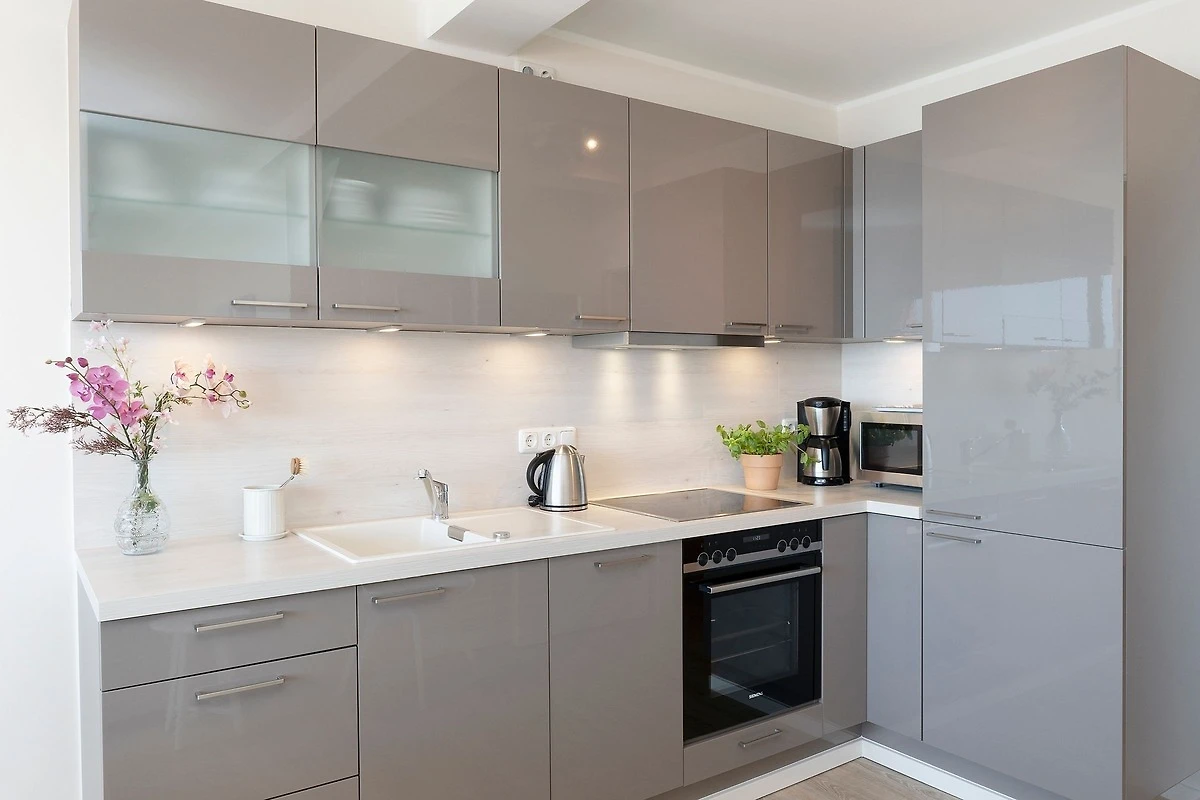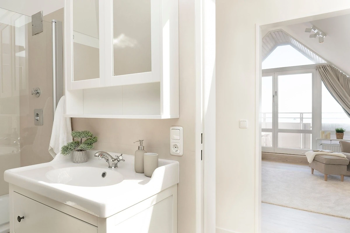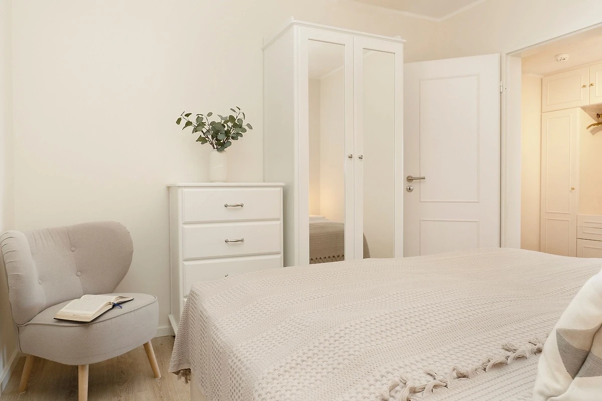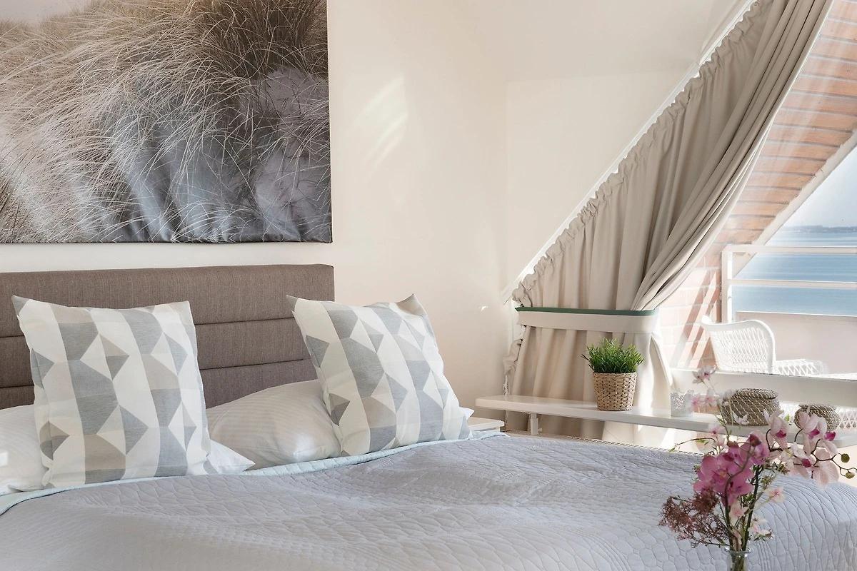 In dieser zauberhaften Ferienwohnung über 2 Etagen mit einer Wohnfläche von ca. 89 m², 2 separaten Schlafzimmern, kombiniertem Wohn-/Schlafraum mit integrierter Küchenzeile, Vollbad, Gäste-WC sowie 2 sonnigen Balkonen mit Meerblick finden max. 4 Erwachsene und 1 Kind ausreichend Platz und Komfort.
