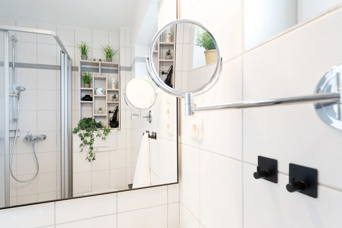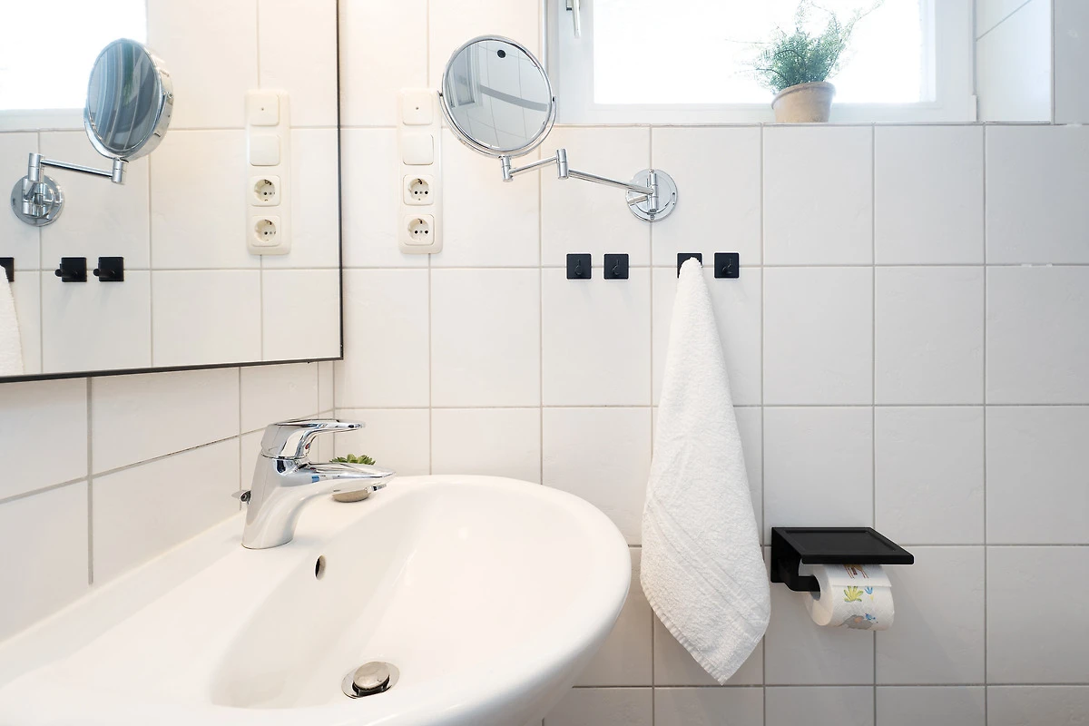 Insgesamt hatten wir einen tollen Aufenthalt in der Ferienwohnung. Die Ausstattung in der Küche war mehr als ausreichend. Das Wohnzimmer und die beiden Schlafzimmer waren insgesamt sehr schön eingerichtet und gepflegt. Auch der Zugang zu dem kleinen Garten mit Terrasse war super! Lediglich das Bad ist sehr in die Jahre gekommen. Zudem ist es sehr ungepflegt. Das Fenster, sowie alle Silikondichtungen weisen bereits Schimmelflecken auf. Der Duschkopf ist extrem verkalkt, sowie auch das Waschbecken! Der Fön war ebenfalls sehr verstaubt! Das Bad benötigt dringend eine Erneuerung. Alles in allem haben wir uns wohl gefühlt! Würden gerne wiederkommen!