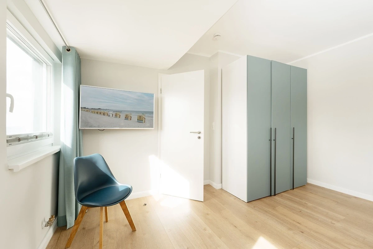 Nehmen Sie Platz im gemütlichen Strandkorb vor dem Haus, direkt an der Promenade, und geniessen Sie die traumhafte Atmosphäre und den wundervollen Ostseeblick. Näher dran geht es nicht - der Strand ist nur rund 5 Meter entfernt. Auch die Ferienwohnung wird Sie begeistern: Das lichtdurchflutete Wohn-/Schlafzimmer mit integrierter, gut ausgestatteter Küche und Essplatz für 4 Personen punktet durch seine geschmackvolle Einrichtung - und auch hier haben Sie einen schönen Meerblick. Im hinteren Bereich garantiert ein komfortables Doppelbett (160x200 cm) erholsame Nächte. Genauso das hochwertigem Doppelbett (180x200 cm) im separaten Schlafzimmer. Das tageslichthelle Design-Bad mit bodentiefer Dusche, Badewanne und Handtuchwärmer bietet den Komfort, den man sich im Urlaub wünscht.