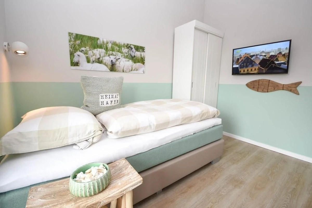 Wir haben uns im Haus �„Heimathafen�“ sehr wohl gefühlt. Es ist sehr schön eingerichtet, mit Liebe zum Detail. Die Küche ist gut ausgestattet. Die Betten sind sehr bequem, einfach top für einen erholsamen Schlaf. In nur wenigen Gehminuten erreicht man den Strand.