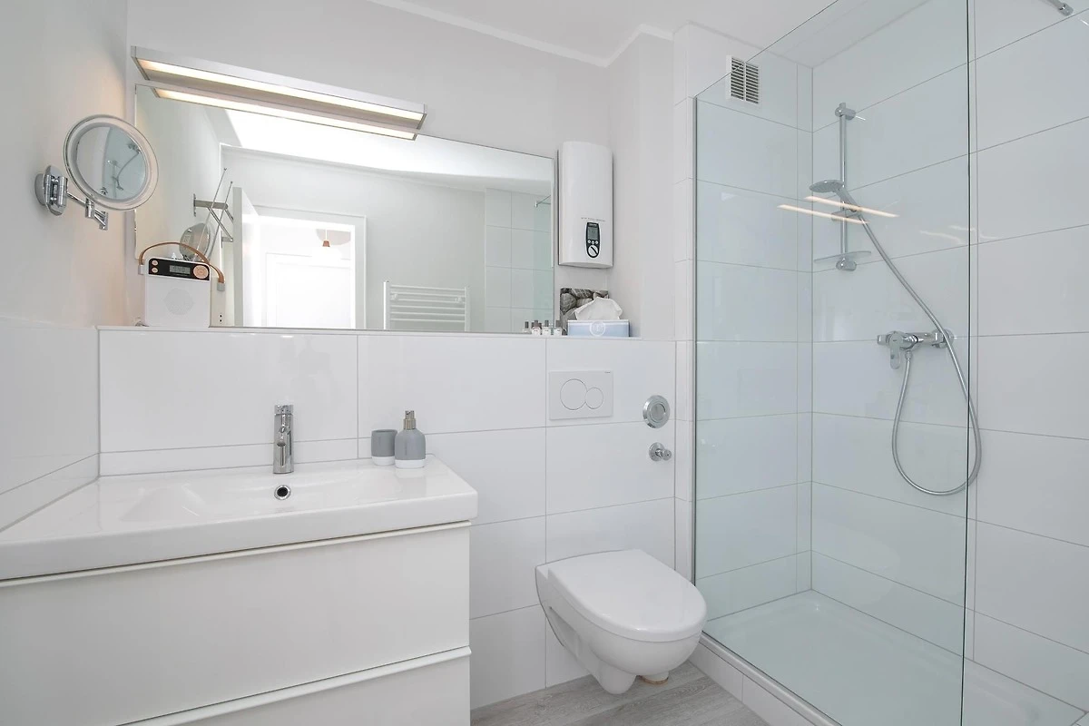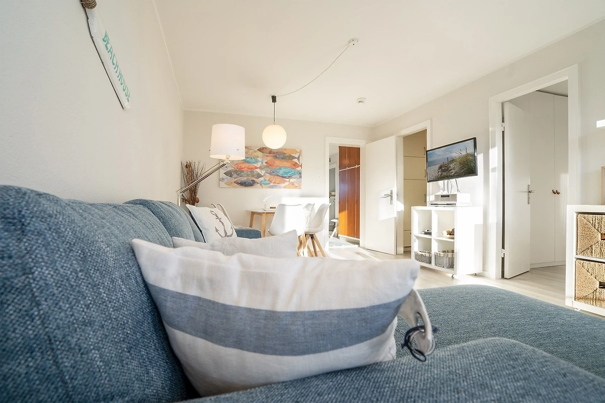 Die separate Küche ist mit Annehmlichkeiten wie Mikrowelle, Backofen und Kühlschrank mit Gefrierfach gut ausgestattet, die Spülmaschine erleichtert den Urlaubsalltag. Ein Schlafzimmer sorgt mit bequemem Doppelbett (2x 80x200 cm) für erholsame Nächte, ein weiteres Schlafzimmer verfügt über ein Etagenbett (je 90x200 cm), sowie ein Einzelbett (90x200 cm). Die Badezimmereinrichtung ist mit praktischer Handtuchheizung und bodentiefer Dusche anspruchsvoll gestaltet. Vom lichtdurchfluteten Wohnbereich mit gemütlicher Sofaecke und TV führt ein direkter Zugang auf den möblierten Balkon, von dem aus Sie einen seitlichen Blick auf die schimmernde Ostsee geniessen können. Der WLAN-Anschluss ist für Sie inklusive.